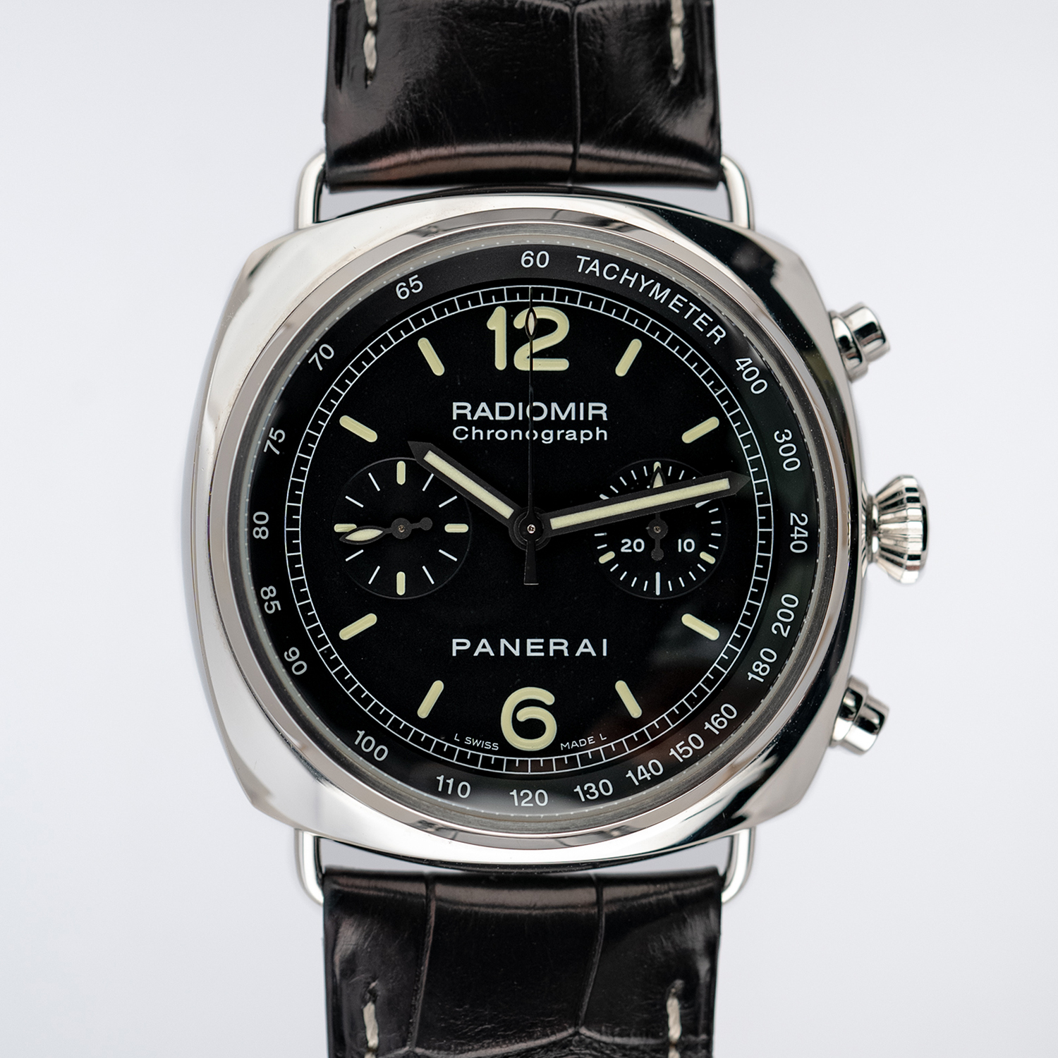 This Panerai Radiomir Automatic PAM00288 has a black baton dial and a leather strap. This Panerai has undergone a thorough inspection of accuracy, functionality and condition at our Panerai certified service centre to determine the level of reconditioning required to meet our strict standards. It has also been checked against our records to ensure authenticity. All our watches have a 24-month warranty for your peace of mind.