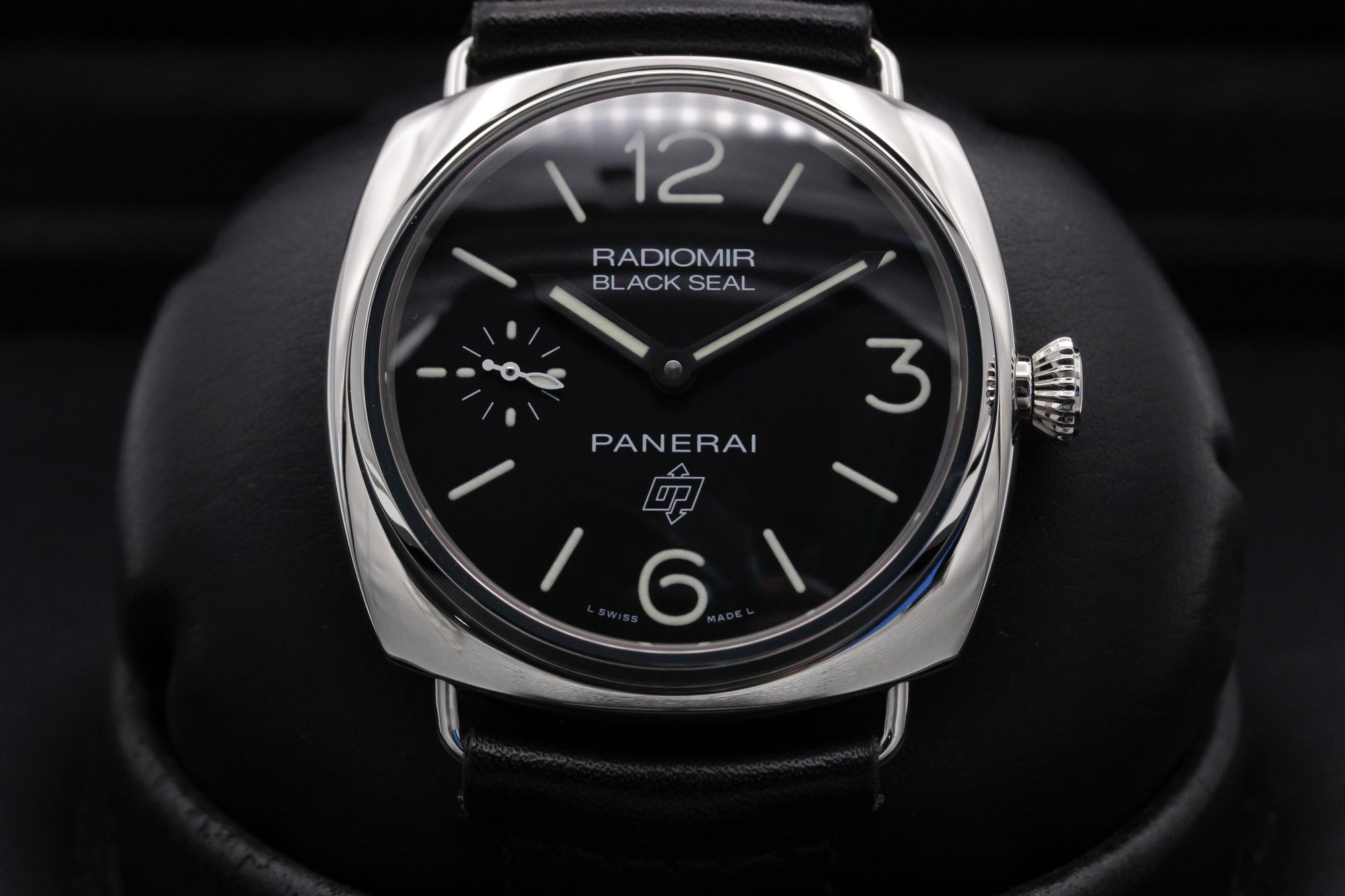 This Panerai Radiomir Manual PAM00380 has a black quarter arabic dial and a leather strap. This Panerai has undergone a thorough inspection of accuracy, functionality and condition at our Panerai certified service centre to determine the level of reconditioning required to meet our strict standards. It has also been checked against our records to ensure authenticity. All our watches have a 24-month warranty for your peace of mind.