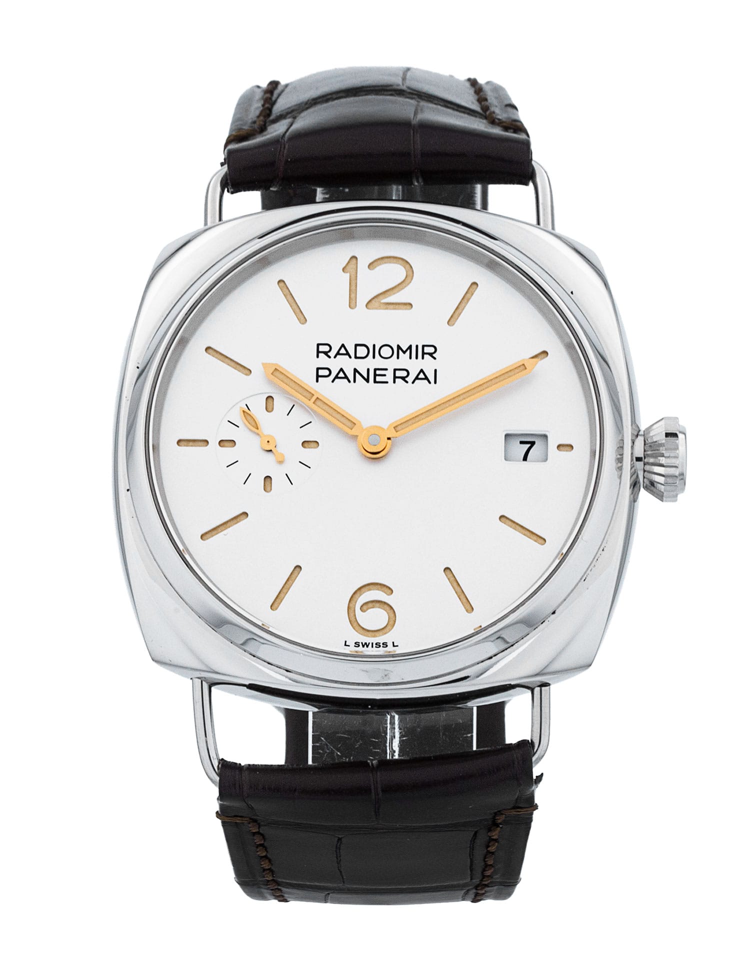 This Panerai Radiomir Quaranta PAM01292 has a white dial and a leather strap. This Panerai has undergone a thorough inspection of accuracy, functionality and condition at our Panerai certified service centre to determine the level of reconditioning required to meet our strict standards. It has also been checked against our records to ensure authenticity. Our watches have a 24-month warranty for your peace of mind, in conjunction with any remaining manufacturer’s warranty from new or from service.