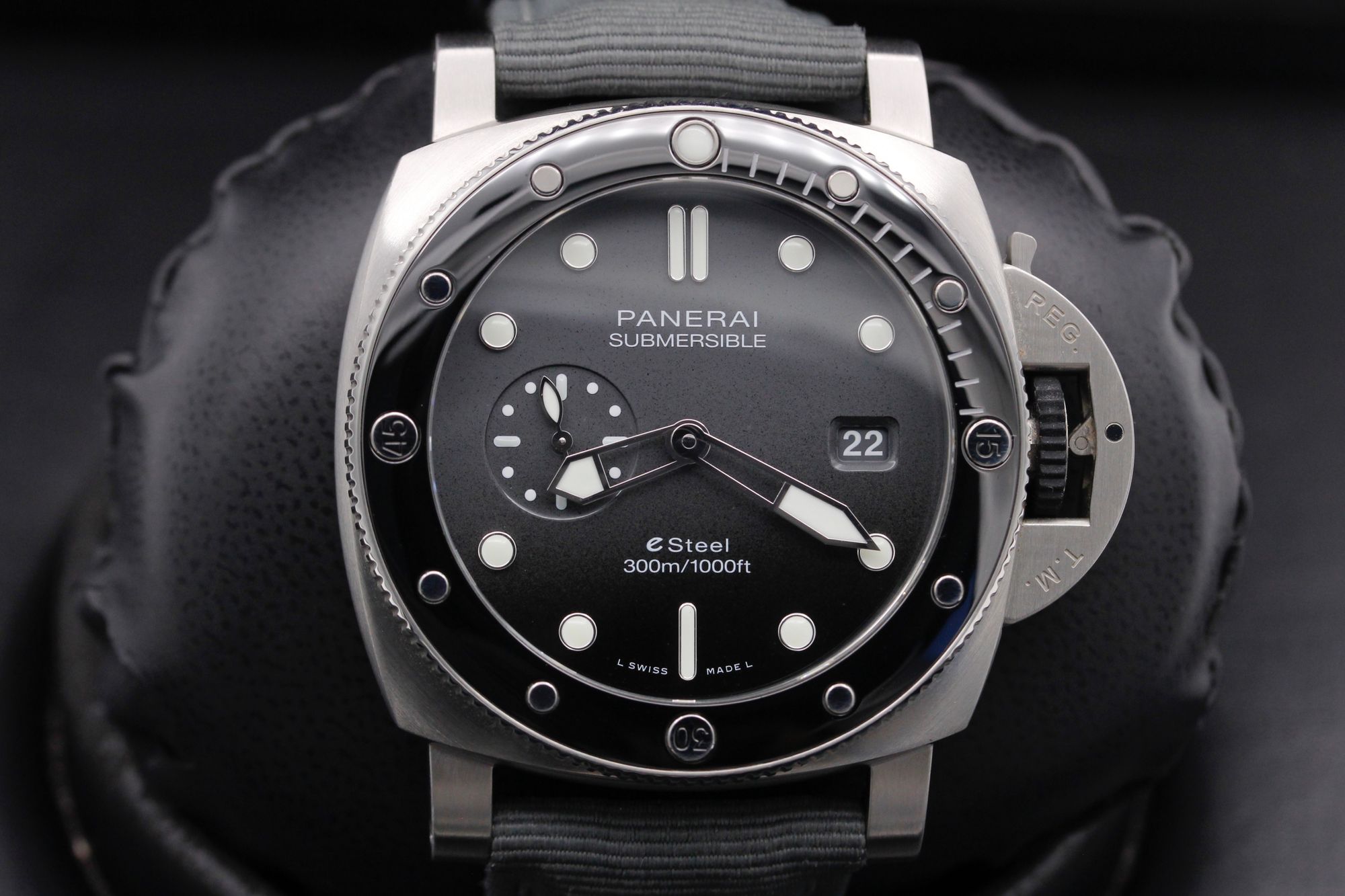This Panerai Submersible QuarantaQuattro PAM01288 has a anthracite dial and a rubber strap. This Panerai has undergone a thorough inspection of accuracy, functionality and condition at our Panerai certified service centre to determine the level of reconditioning required to meet our strict standards. It has also been checked against our records to ensure authenticity. All our watches have a 24-month warranty for your peace of mind.