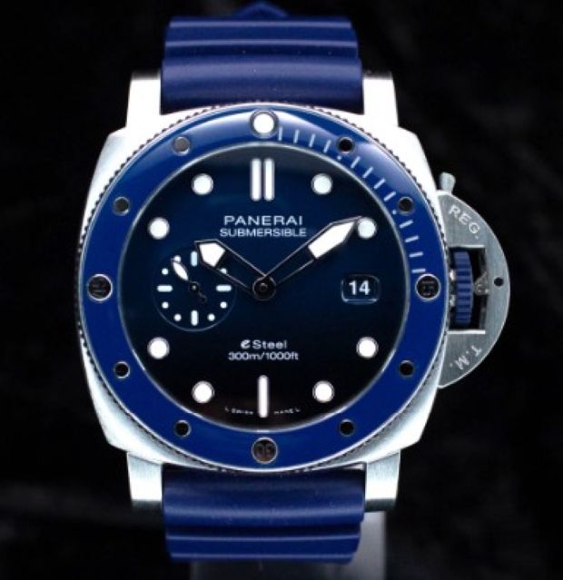 This Panerai Submersible QuarantaQuattro PAM01289 has a blue dial and a rubber strap. This Panerai has undergone a thorough inspection of accuracy, functionality and condition at our Panerai certified service centre to determine the level of reconditioning required to meet our strict standards. It has also been checked against our records to ensure authenticity. Our watches have a 24-month warranty for your peace of mind, in conjunction with any remaining manufacturer’s warranty from new or from service.