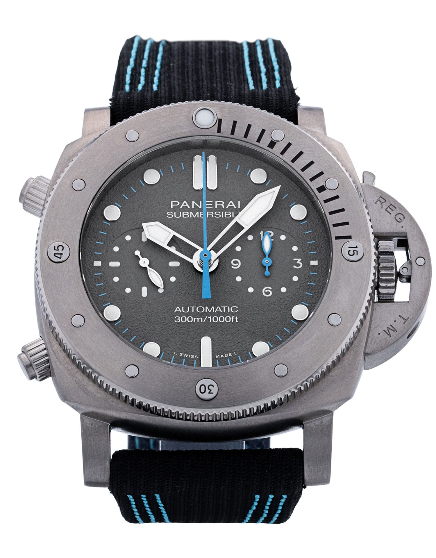 This Panerai Submersible PAM01207 has a grey dial and a fabric strap. This Panerai has undergone a thorough inspection of accuracy, functionality and condition at our Panerai certified service centre to determine the level of reconditioning required to meet our strict standards. It has also been checked against our records to ensure authenticity. Our watches have a 24-month warranty for your peace of mind, in conjunction with any remaining manufacturer’s warranty from new or from service.
