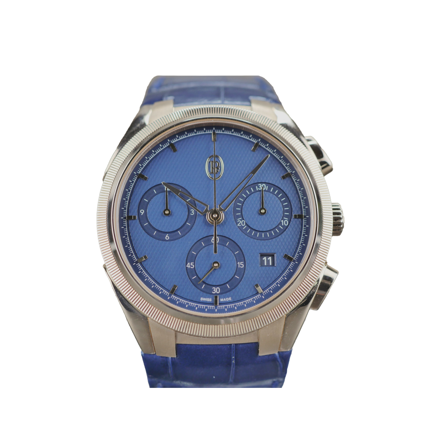 This Parmigiani Tonda PFC915-2020001-300182 has a blue dial and a leather strap. This Parmigiani has undergone a thorough inspection of water resistance, accuracy, functionality and condition to determine the level of reconditioning required to meet our strict standards. It has also been referenced against technical documents and manufacturer records where available to ensure authenticity and a clean history. Our watches have a 24-month warranty for your peace of mind, in conjunction with any remaining manufacturer’s warranty from new or from service.