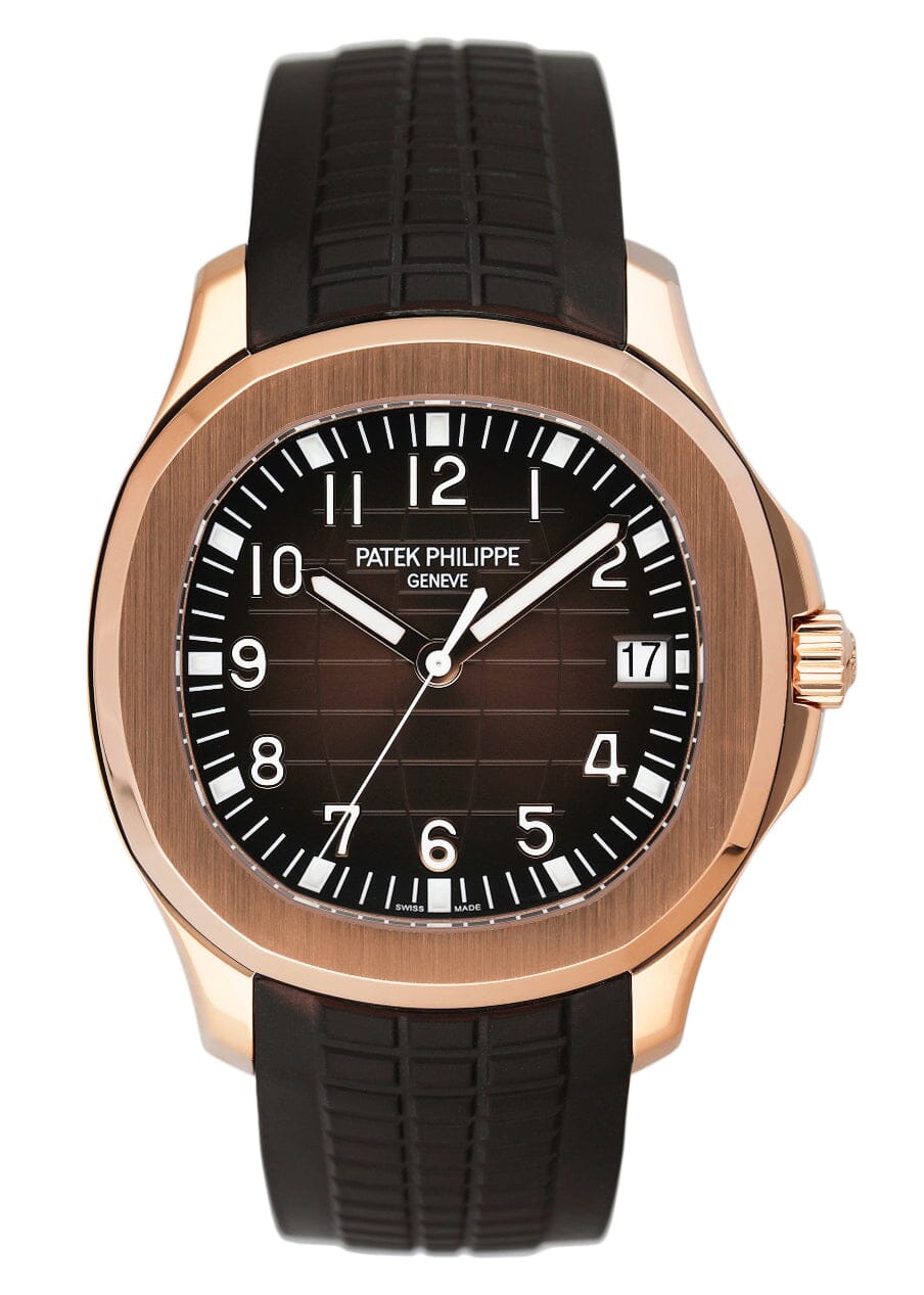 This Patek Philippe Aquanaut 5167R-001 has a brown arabic dial and a rubber strap. This Patek Philippe has undergone a thorough inspection of water resistance, accuracy, functionality and condition to determine the level of reconditioning required to meet our strict standards. It has also been referenced against technical documents and manufacturer records where available to ensure authenticity and a clean history. All our watches have a 24-month warranty for your peace of mind.
