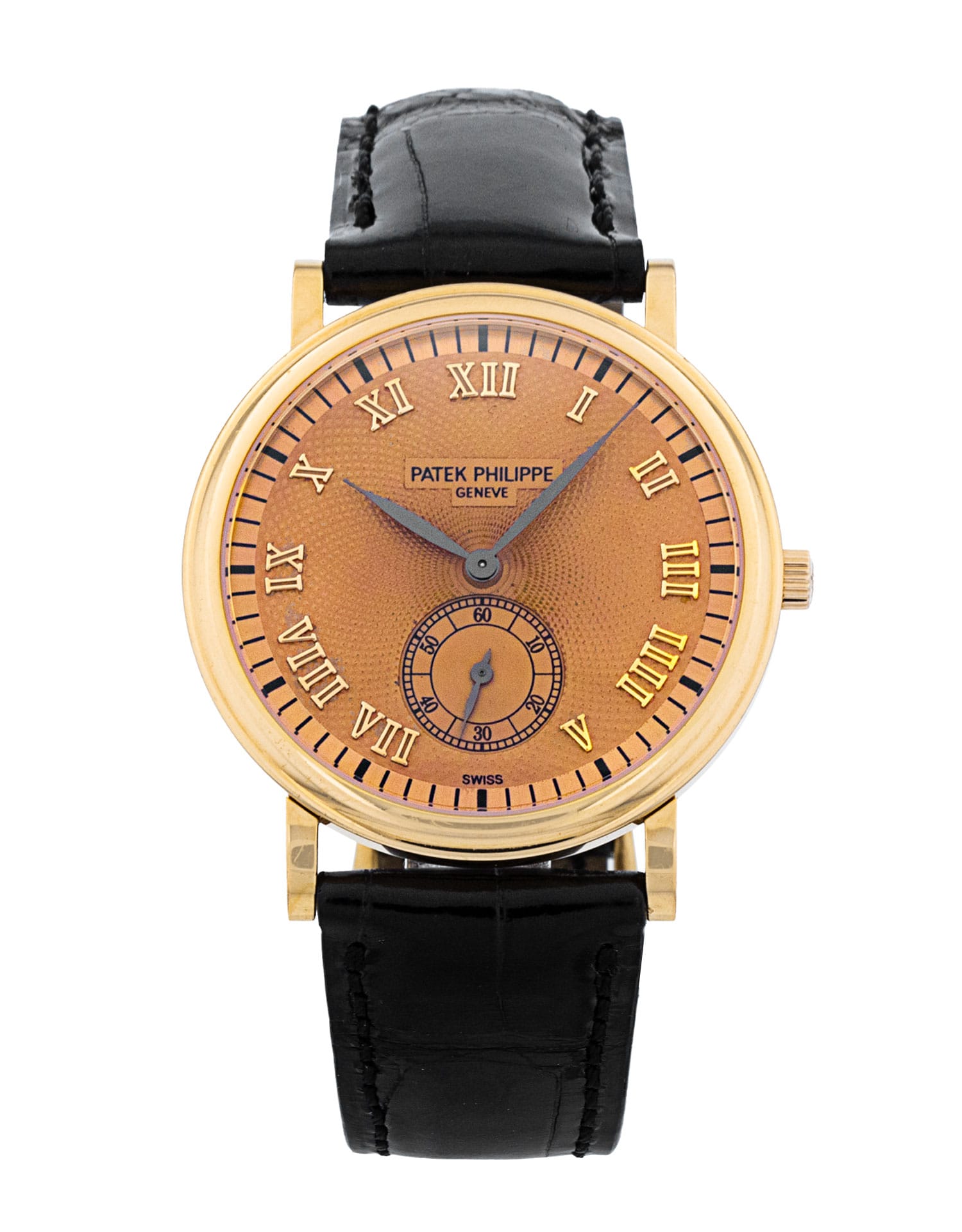 Originally an ancient fortress in Spain, Calatrava saw the foundation of the noble brotherhood of religious knights, the Order of Calatrava. Their emblem would be adopted much later by one of Switzerland's most prestigious watchmakers, Patek Philippe, whose flagship collection is now called Calatrava in honour of this historical connection. These watches are among the most elegant and distinguished in the world, displaying a flawless, understated stylishness combined with the avant-guard aesthetic in vogue at the time of the first Calatravas in the early 1930s. This example features a stunning champagne dial with a breathtaking guilloché pattern.