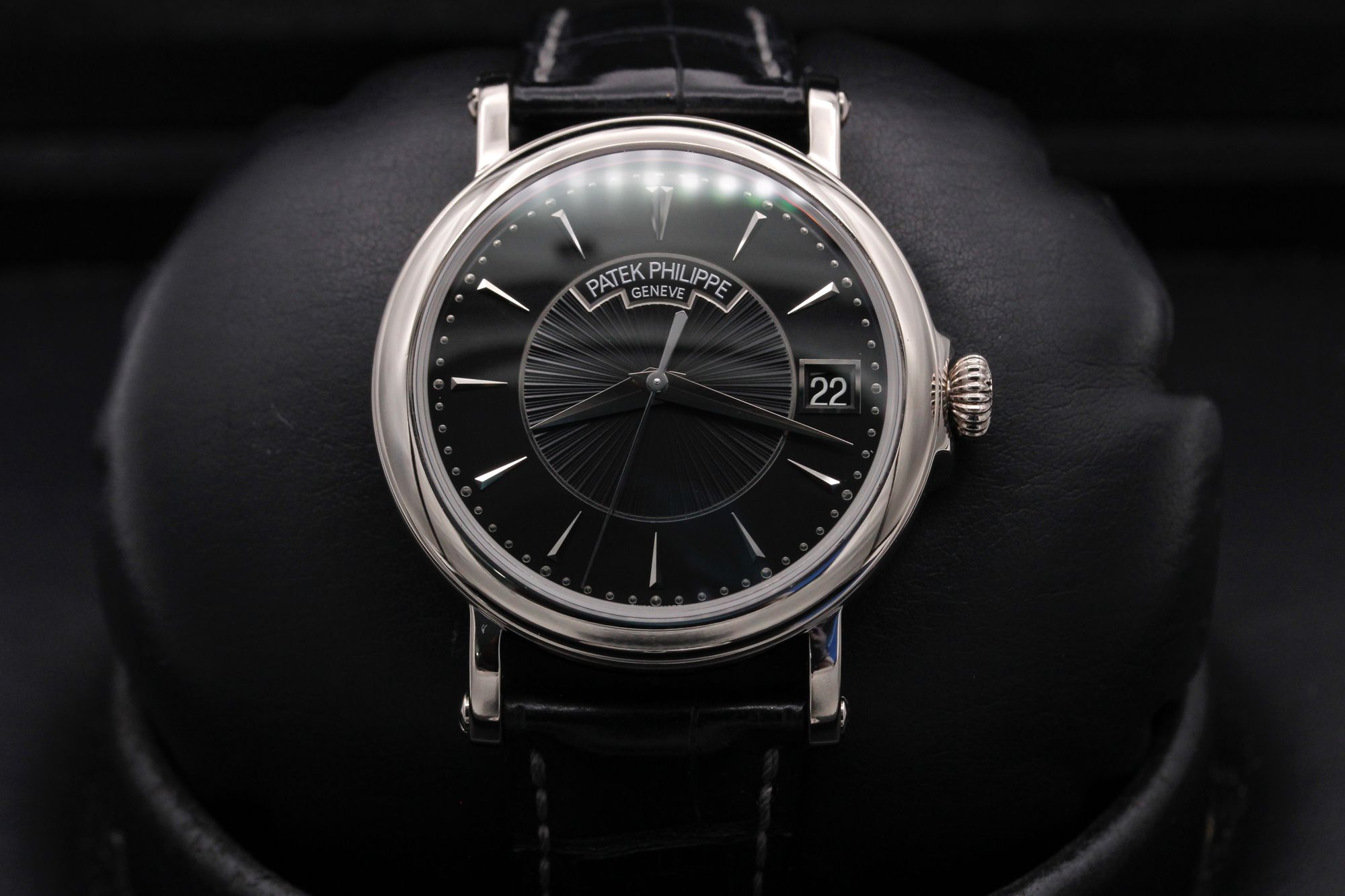 This Patek Philippe Calatrava 5153G-001 has a black baton dial and a leather strap. This Patek Philippe has undergone a thorough inspection of water resistance, accuracy, functionality and condition to determine the level of reconditioning required to meet our strict standards. It has also been referenced against technical documents and manufacturer records where available to ensure authenticity and a clean history. All our watches have a 24-month warranty for your peace of mind.