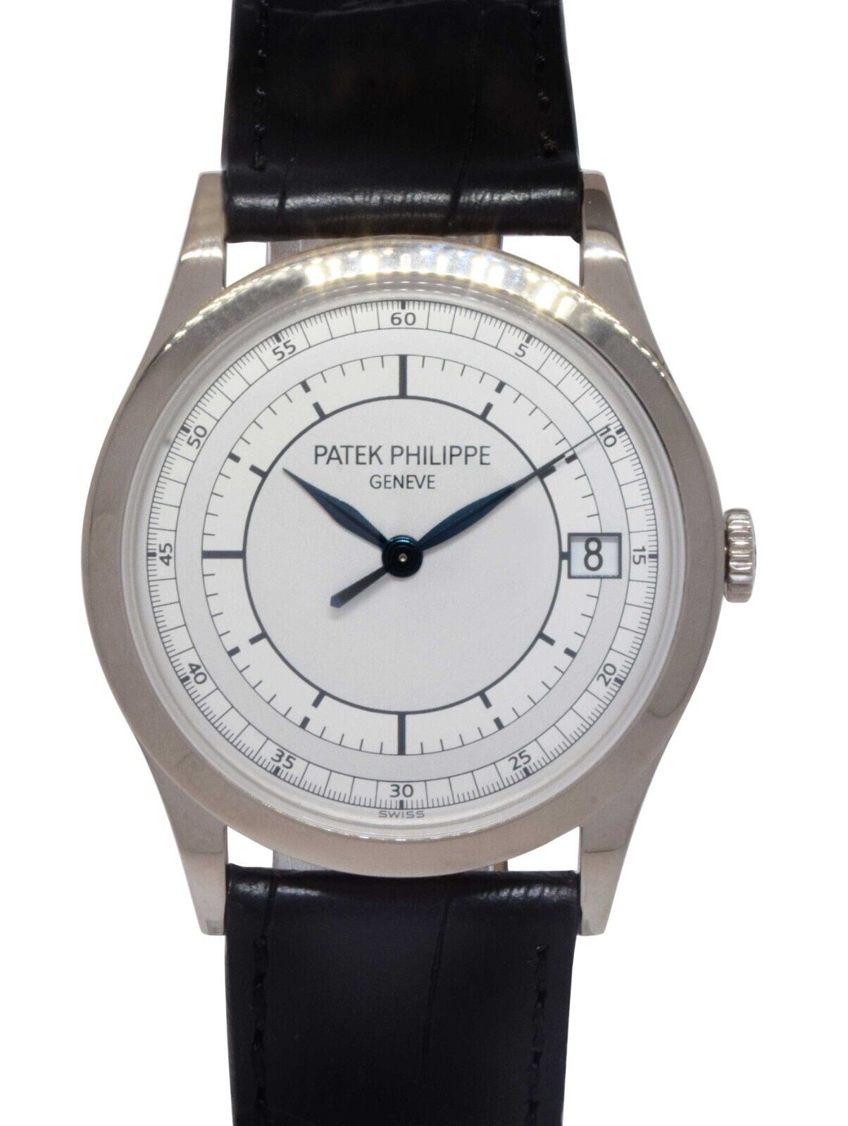 This Patek Philippe Calatrava 5296G-010 has a silver baton dial and a leather strap. This Patek Philippe has undergone a thorough inspection of water resistance, accuracy, functionality and condition to determine the level of reconditioning required to meet our strict standards. It has also been referenced against technical documents and manufacturer records where available to ensure authenticity and a clean history. All our watches have a 24-month warranty for your peace of mind.