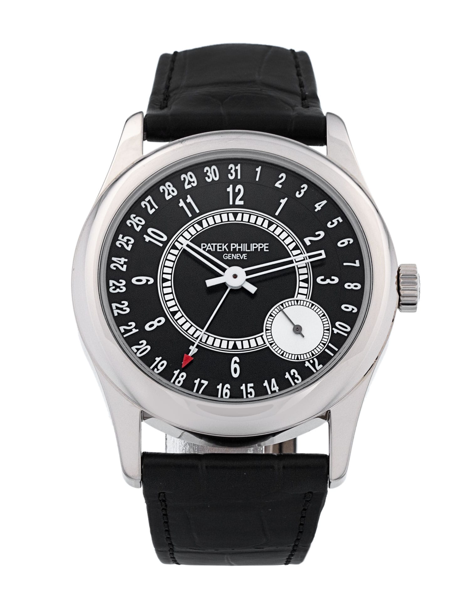 This Patek Philippe Calatrava 6006G-001 has a black arabic dial and a leather strap. This Patek Philippe has undergone a thorough inspection of water resistance, accuracy, functionality and condition to determine the level of reconditioning required to meet our strict standards. It has also been referenced against technical documents and manufacturer records where available to ensure authenticity and a clean history. All our watches have a 24-month warranty for your peace of mind.