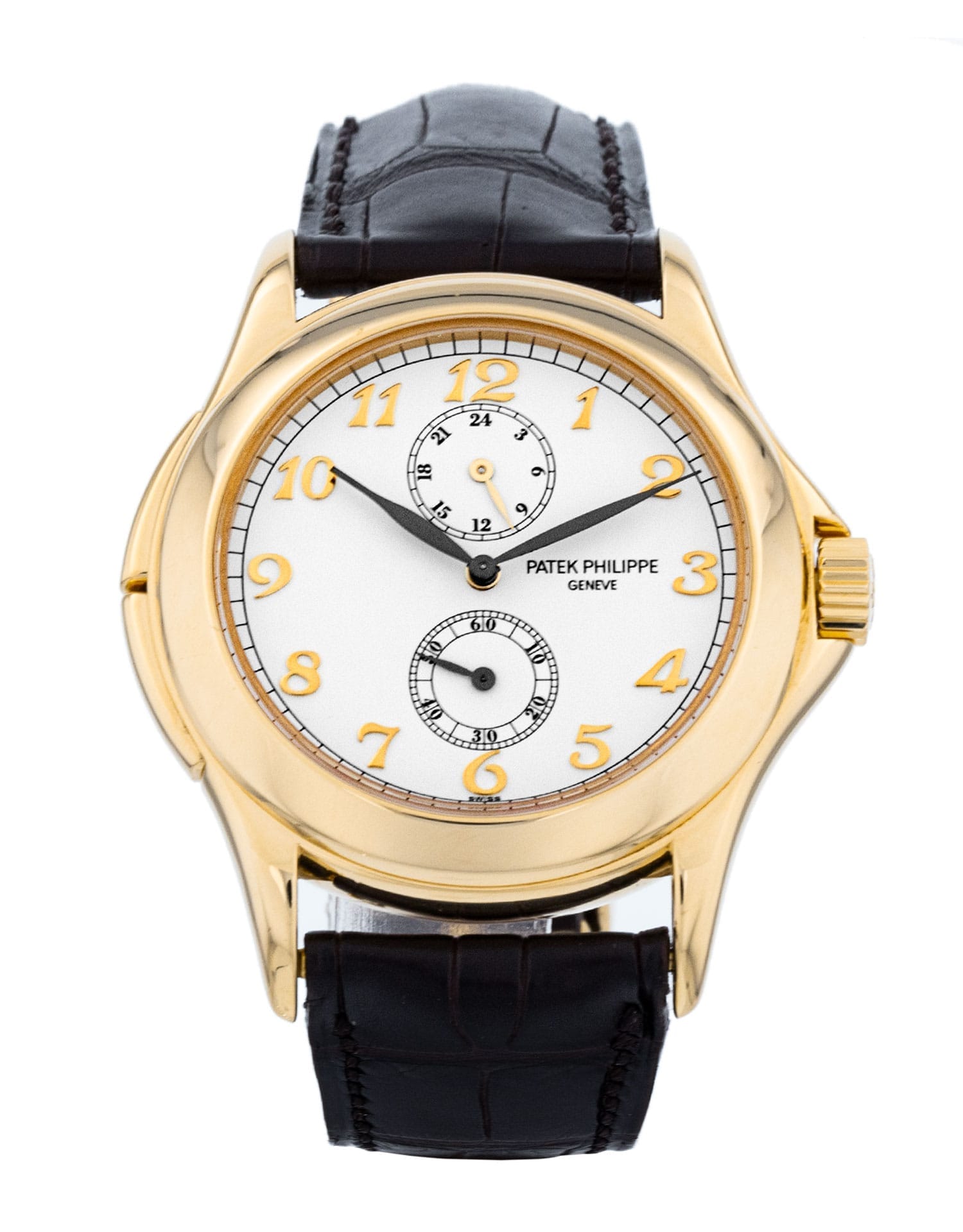 This Patek Philippe Complications 5134J-001 has a white arabic dial and a leather strap. This Patek Philippe has undergone a thorough inspection of water resistance, accuracy, functionality and condition to determine the level of reconditioning required to meet our strict standards. It has also been referenced against technical documents and manufacturer records where available to ensure authenticity and a clean history. All our watches have a 24-month warranty for your peace of mind.