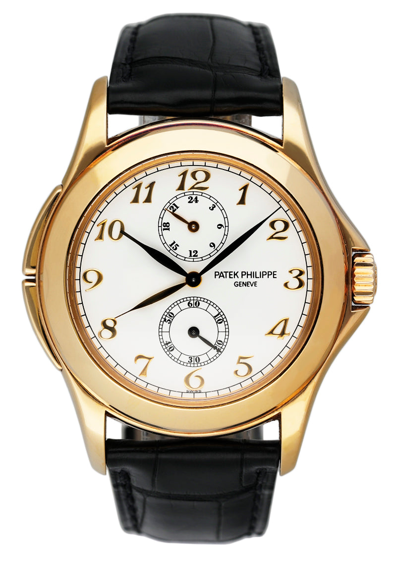 This Patek Philippe Complications 5134J-001 has a white arabic dial and a leather strap. This Patek Philippe has undergone a thorough inspection of water resistance, accuracy, functionality and condition to determine the level of reconditioning required to meet our strict standards. It has also been referenced against technical documents and manufacturer records where available to ensure authenticity and a clean history. All our watches have a 24-month warranty for your peace of mind.