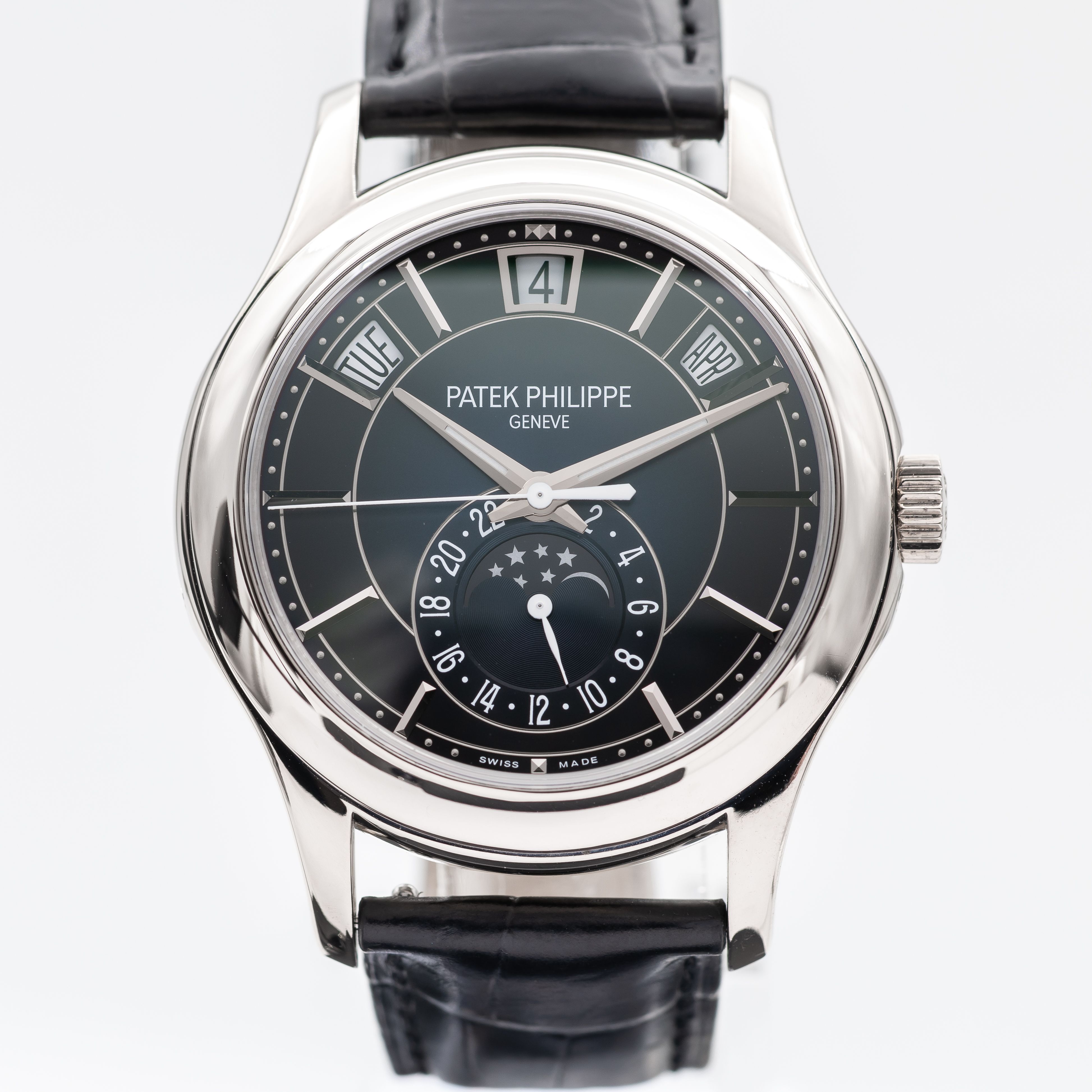 The legendary 5205 features several great complications, chief among which is surely the annual calendar. Patek revolutionised calendar complications when it invented the annual calendar in the 1990s, a complication with almost as much complexity and convenience as its perpetual counterpart, only needing to be set once per year. As in the equally well-known ref. 5960, the 5205's calendar is displayed via three small, instant-jumping and remarkably easy-to-read windows at the top of the watch. They nicely mirror a moonphase and 24-hour subdial combined at the bottom. With a two-tone dial, the watch takes on a wonderful, almost sporty appeal, while retaining every inch of the elegance for which Patek Philippe is so well loved.