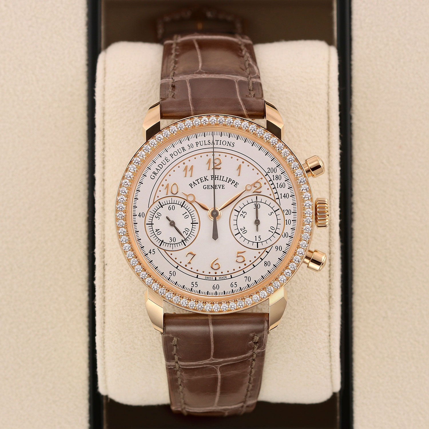 This Patek Philippe Complications 7150/250R-001 has a silver arabic dial and a leather strap. This Patek Philippe has undergone a thorough inspection of water resistance, accuracy, functionality and condition to determine the level of reconditioning required to meet our strict standards. It has also been referenced against technical documents and manufacturer records where available to ensure authenticity and a clean history. All our watches have a 24-month warranty for your peace of mind.
