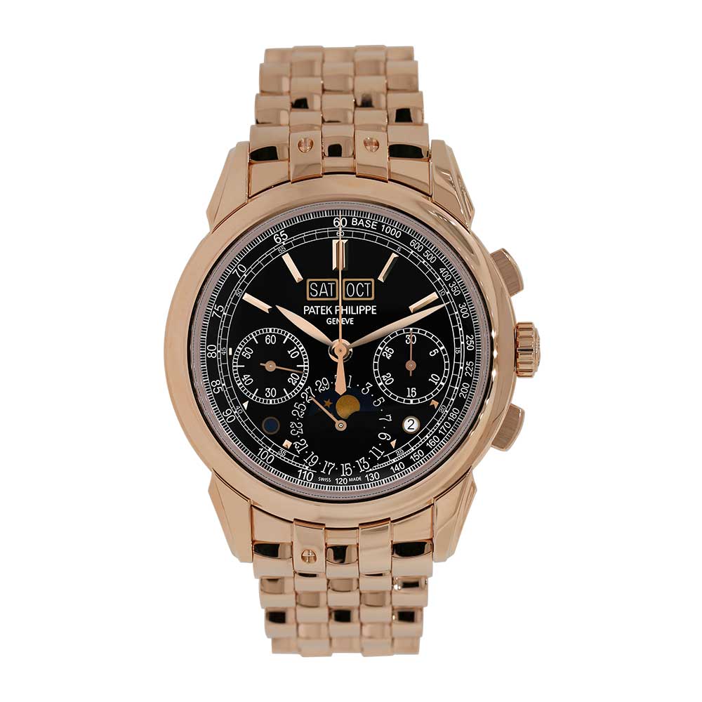 This Patek Philippe Grand Complications 5270/1R-001 has a black dial and a bracelet strap. This Patek Philippe has undergone a thorough inspection of water resistance, accuracy, functionality and condition to determine the level of reconditioning required to meet our strict standards. It has also been referenced against technical documents and manufacturer records where available to ensure authenticity and a clean history. Our watches have a 24-month warranty for your peace of mind, in conjunction with any remaining manufacturer’s warranty from new or from service.