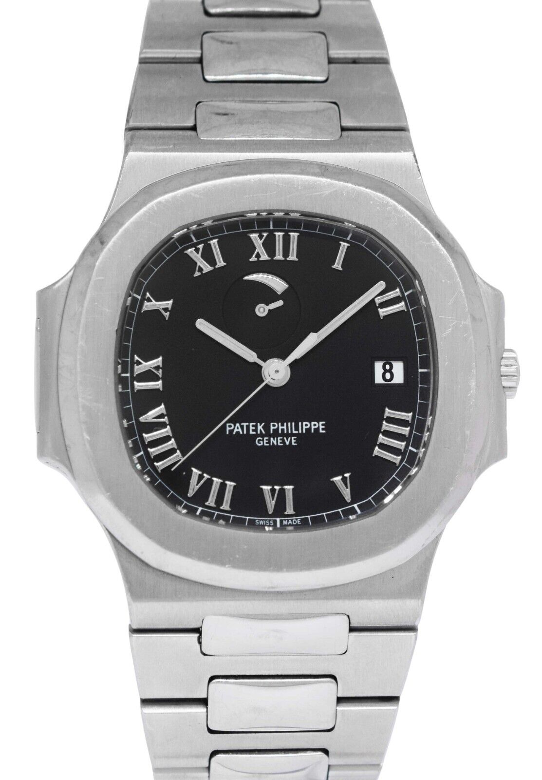 This Patek Philippe Nautilus 3710/1A has a black roman numeral dial and a bracelet strap. This Patek Philippe has undergone a thorough inspection of water resistance, accuracy, functionality and condition to determine the level of reconditioning required to meet our strict standards. It has also been referenced against technical documents and manufacturer records where available to ensure authenticity and a clean history. All our watches have a 24-month warranty for your peace of mind.
