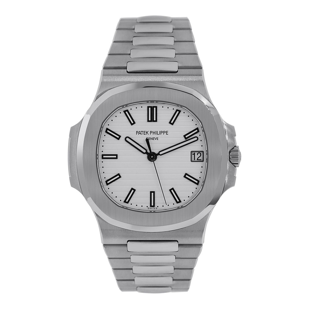 This Patek Philippe Nautilus 5711/1A-011 has a white baton dial and a bracelet strap. This Patek Philippe has undergone a thorough inspection of water resistance, accuracy, functionality and condition to determine the level of reconditioning required to meet our strict standards. It has also been referenced against technical documents and manufacturer records where available to ensure authenticity and a clean history. All our watches have a 24-month warranty for your peace of mind.