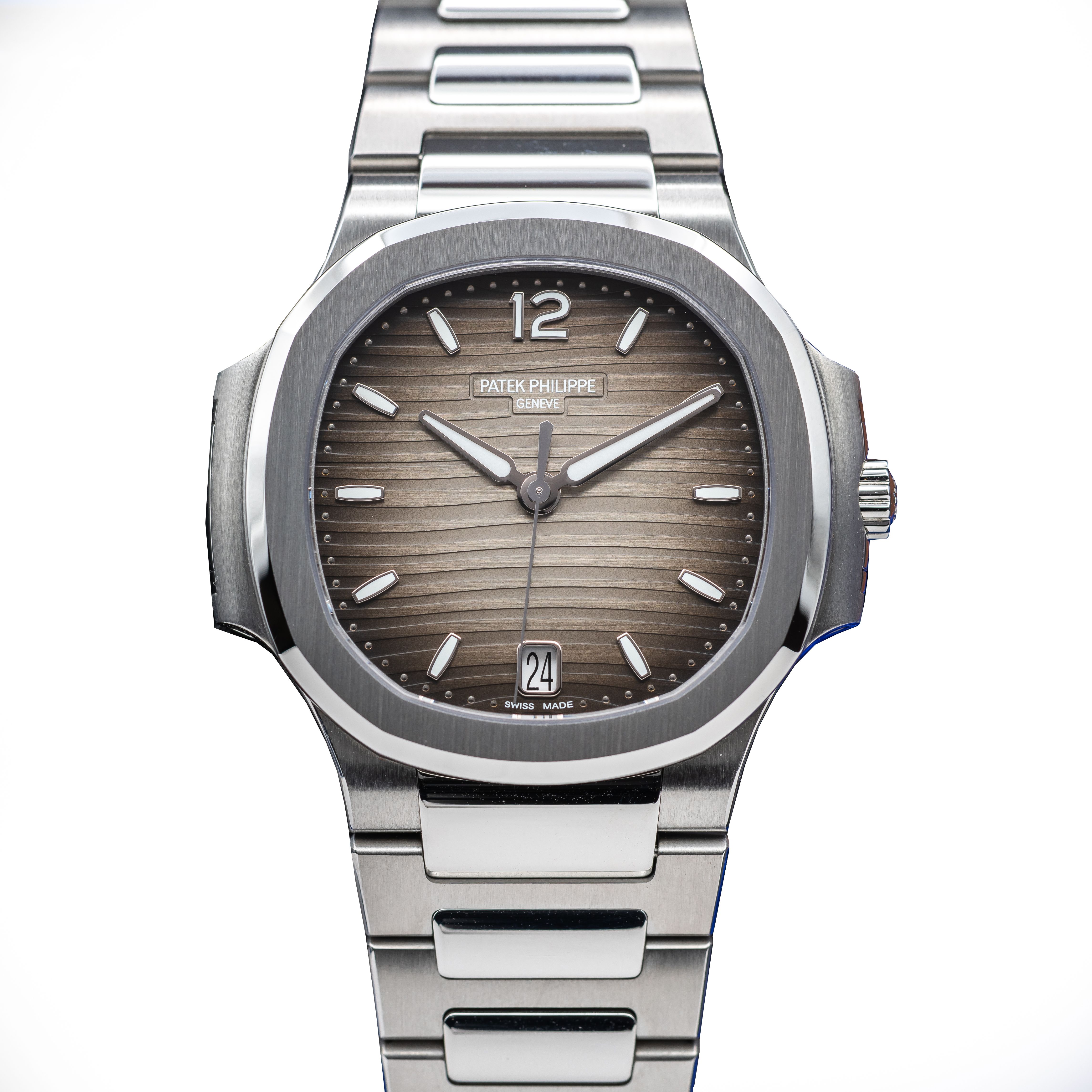 This Patek Philippe Nautilus 7118/1A-011 has a grey baton dial and a bracelet strap. This Patek Philippe has undergone a thorough inspection of water resistance, accuracy, functionality and condition to determine the level of reconditioning required to meet our strict standards. It has also been referenced against technical documents and manufacturer records where available to ensure authenticity and a clean history. Our watches have a 24-month warranty for your peace of mind, in conjunction with any remaining manufacturer’s warranty from new or from service.