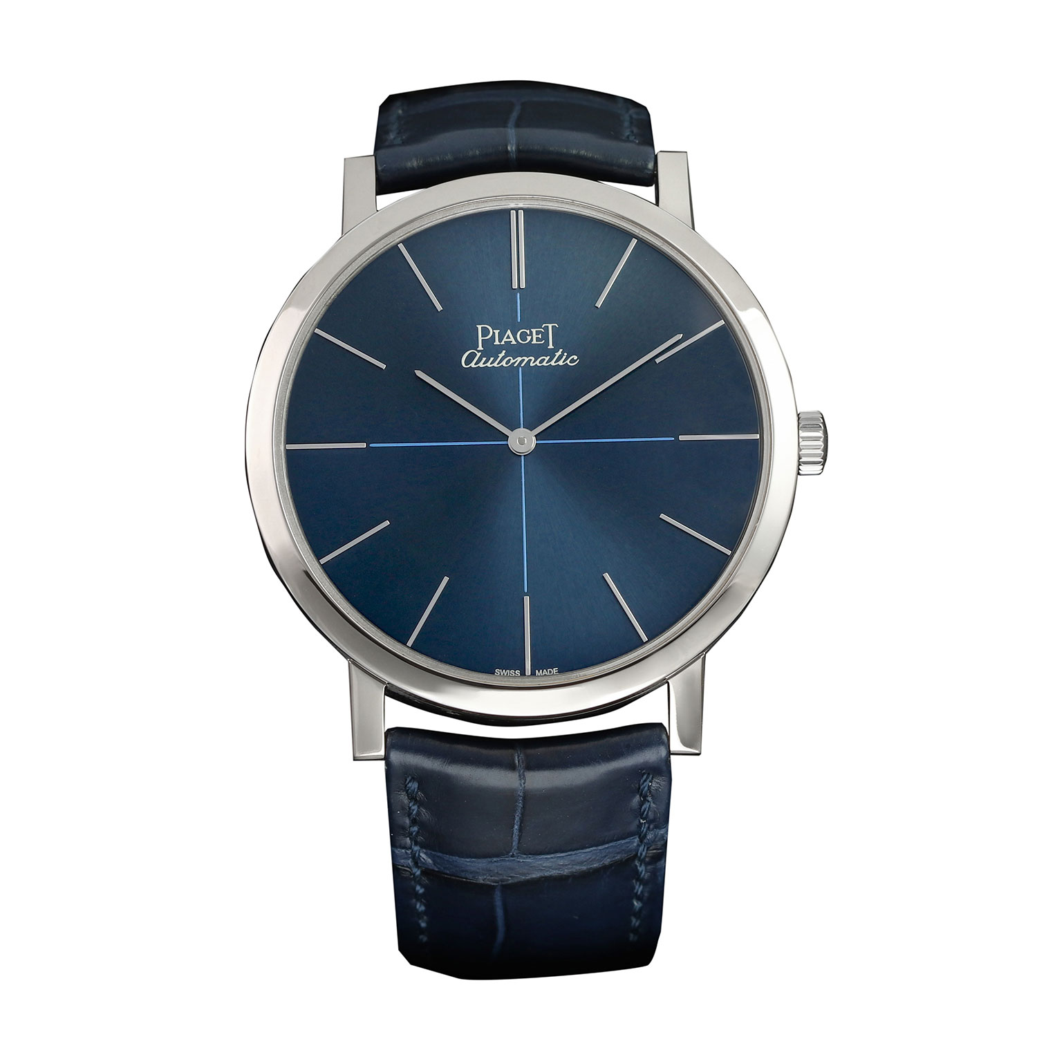 This Piaget Altiplano G0A42105 has a blue baton dial and a leather strap. This Piaget has undergone a thorough inspection of water resistance, accuracy, functionality and condition to determine the level of reconditioning required to meet our strict standards. It has also been referenced against technical documents and manufacturer records where available to ensure authenticity and a clean history. Our watches have a 24-month warranty for your peace of mind, in conjunction with any remaining manufacturer’s warranty from new or from service.