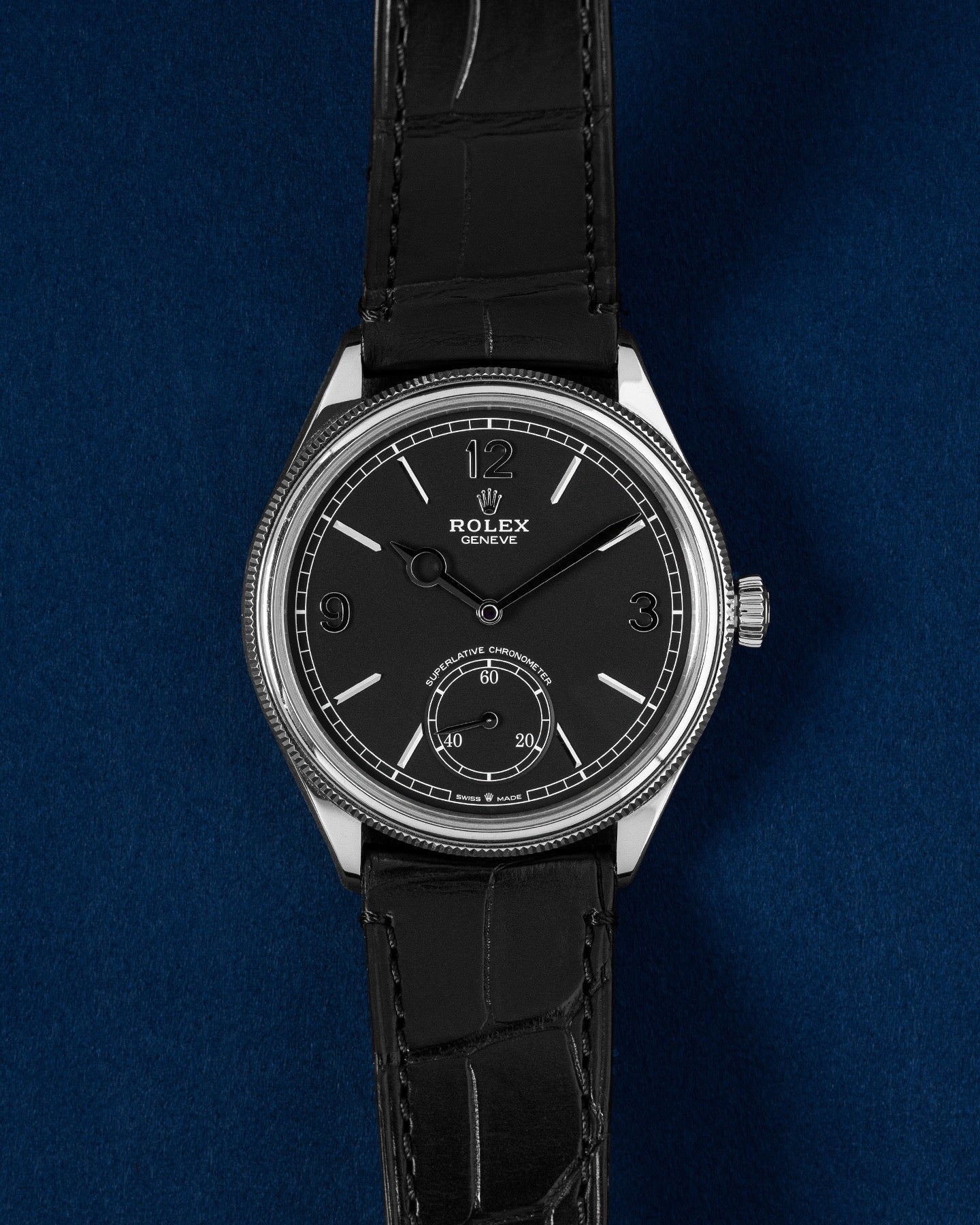 This Rolex 1908 52509 has a black quarter arabic dial and a leather strap. This Rolex has undergone a thorough inspection of water resistance, accuracy, functionality and condition to determine the level of reconditioning required to meet our strict standards. It has also been referenced against technical documents and manufacturer records where available to ensure authenticity and a clean history. Our watches have a 24-month warranty for your peace of mind, in conjunction with any remaining manufacturer’s warranty from new or from service. To maintain the manufacturer’s warranty on this watch, it has not been polished in our service centre.