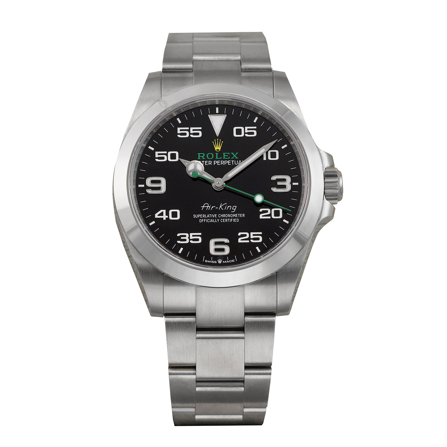 This Rolex Air-King 126900 has a black arabic dial and a bracelet strap. This Rolex has undergone a thorough inspection of water resistance, accuracy, functionality and condition to determine the level of reconditioning required to meet our strict standards. It has also been referenced against technical documents and manufacturer records where available to ensure authenticity and a clean history. Our watches have a 24-month warranty for your peace of mind, in conjunction with any remaining manufacturer’s warranty from new or from service. To maintain the manufacturer’s warranty on this watch, it has not been polished in our service centre.