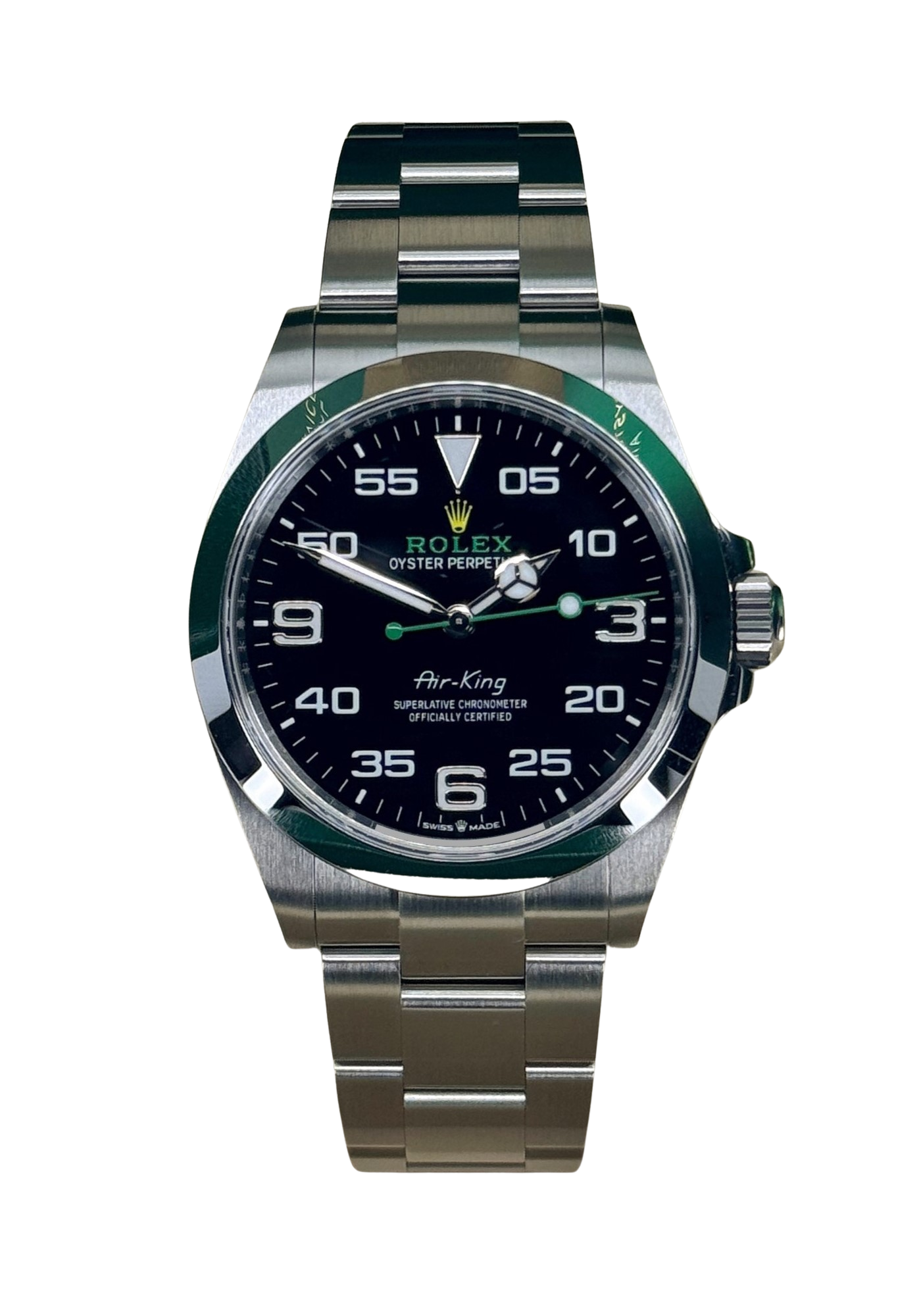 This Rolex Air-King 126900 has a black arabic dial and a bracelet strap. This Rolex has undergone a thorough inspection of water resistance, accuracy, functionality and condition to determine the level of reconditioning required to meet our strict standards. It has also been referenced against technical documents and manufacturer records where available to ensure authenticity and a clean history. Our watches have a 24-month warranty for your peace of mind, in conjunction with any remaining manufacturer’s warranty from new or from service. To maintain the manufacturer’s warranty on this watch, it has not been polished in our service centre.