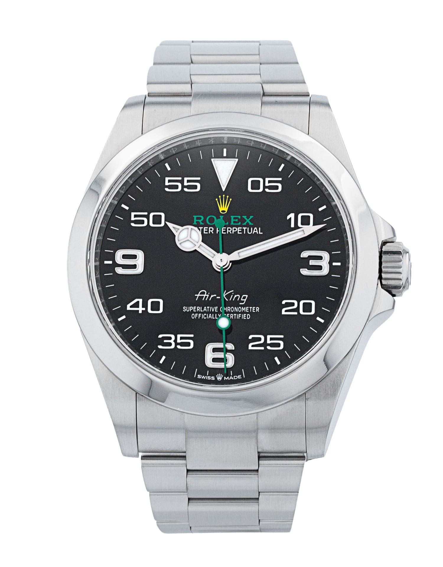 This Rolex Air-King 126900 has a black arabic dial and a bracelet strap. This Rolex has undergone a thorough inspection of water resistance, accuracy, functionality and condition to determine the level of reconditioning required to meet our strict standards. It has also been referenced against technical documents and manufacturer records where available to ensure authenticity and a clean history. Our watches have a 24-month warranty for your peace of mind, in conjunction with any remaining manufacturer’s warranty from new or from service. To maintain the manufacturer’s warranty on this watch, it has not been polished in our service centre.