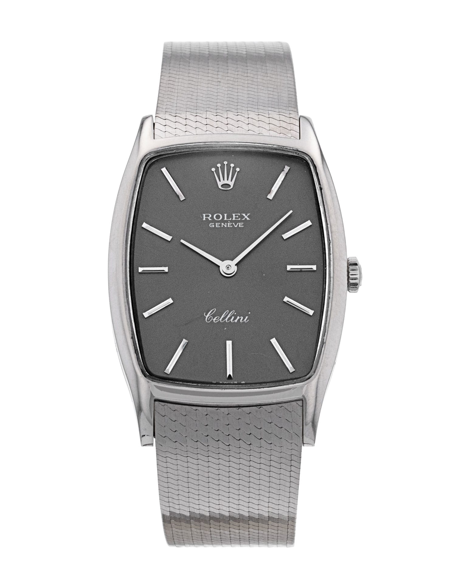 This Rolex Cellini 3807 has a grey dial and a bracelet strap. This Rolex has undergone a thorough inspection of accuracy, functionality and condition to determine the level of reconditioning required to meet our strict standards. It has also been referenced against technical documents and manufacturer records where available to ensure authenticity and a clean history. All our watches have a 24-month warranty for your peace of mind. One of our skilled polishing technicians has removed marks on the case and bracelet of this watch, brought about by daily wear and tear, which is why this watch does not come with the remaining manufacturer’s warranty.