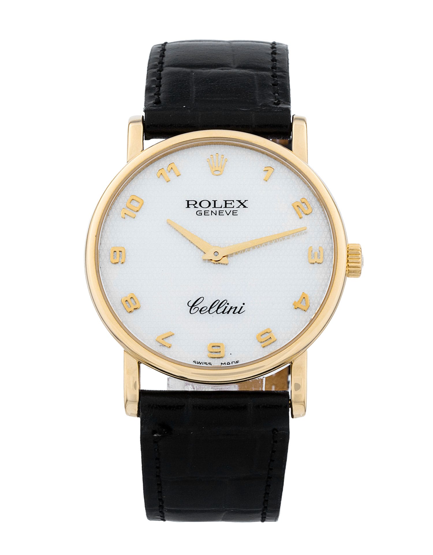 This Rolex Cellini 5115/8 has a mother of pearl white arabic dial and a leather strap. This Rolex has undergone a thorough inspection of water resistance, accuracy, functionality and condition to determine the level of reconditioning required to meet our strict standards. It has also been referenced against technical documents and manufacturer records where available to ensure authenticity and a clean history. Our watches have a 24-month warranty for your peace of mind, in conjunction with any remaining manufacturer’s warranty from new or from service. To maintain the manufacturer’s warranty on this watch, it has not been polished in our service centre.