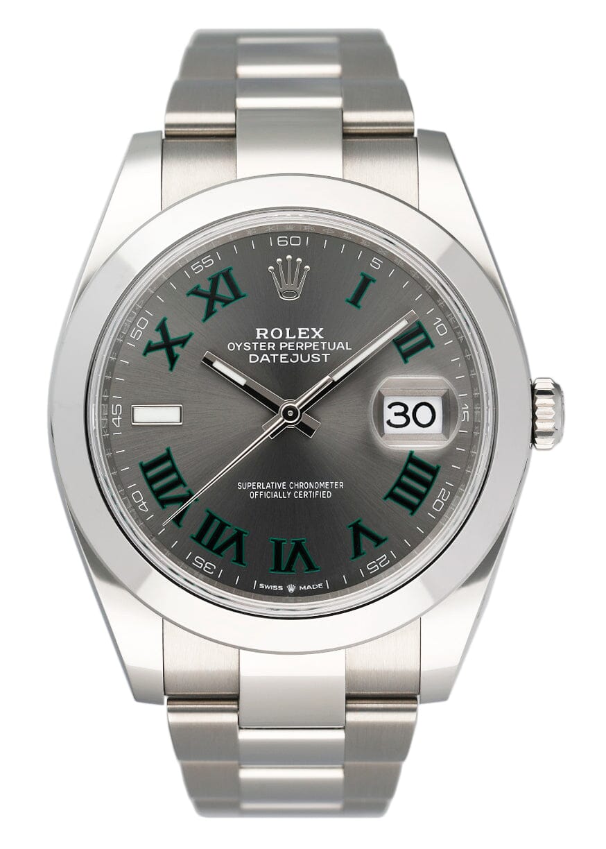 This Rolex Datejust 41 126300 has a slate baton dial and a bracelet strap. This Rolex has undergone a thorough inspection of water resistance, accuracy, functionality and condition to determine the level of reconditioning required to meet our strict standards. It has also been referenced against technical documents and manufacturer records where available to ensure authenticity and a clean history. Our watches have a 24-month warranty for your peace of mind, in conjunction with any remaining manufacturer’s warranty from new or from service. To maintain the manufacturer’s warranty on this watch, it has not been polished in our service centre.