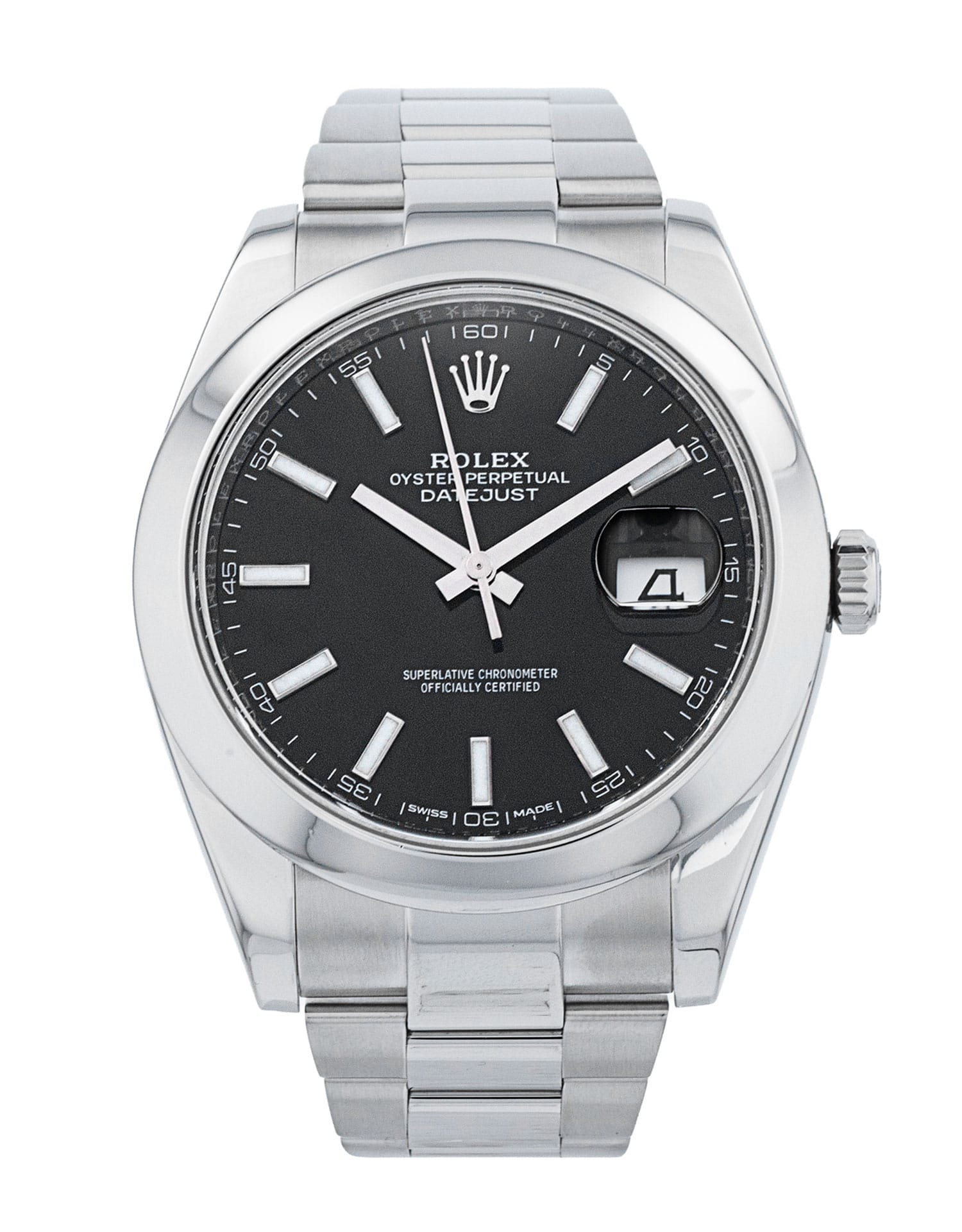 This Rolex Datejust 41 126300 has a black baton dial and a bracelet strap. This Rolex has undergone a thorough inspection of water resistance, accuracy, functionality and condition to determine the level of reconditioning required to meet our strict standards. It has also been referenced against technical documents and manufacturer records where available to ensure authenticity and a clean history. All our watches have a 24-month warranty for your peace of mind. One of our skilled polishing technicians has removed marks on the case and bracelet of this watch, brought about by daily wear and tear, which is why this watch does not come with the remaining manufacturer’s warranty.