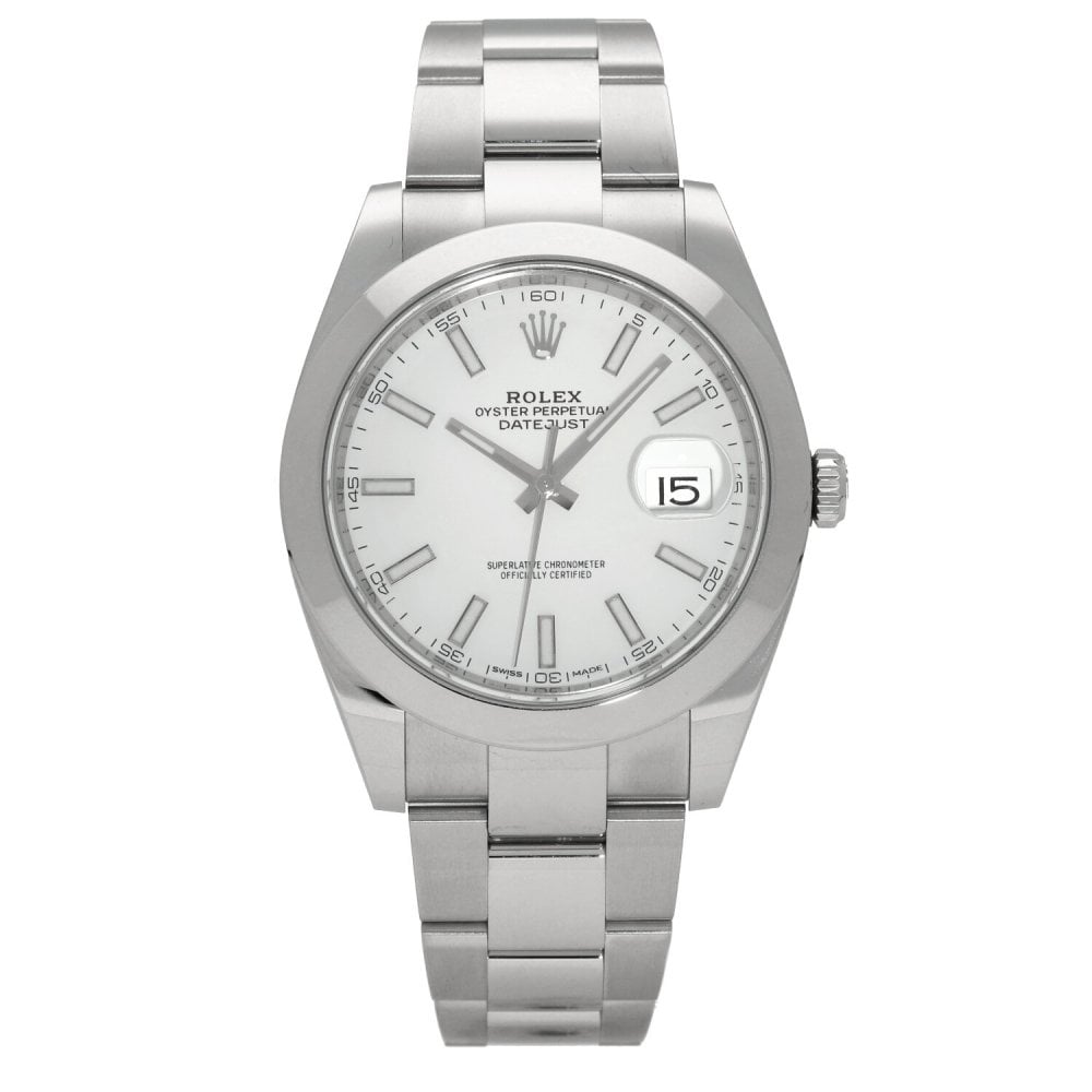 This Rolex Datejust 41 126300 has a white baton dial and a bracelet strap. This Rolex has undergone a thorough inspection of water resistance, accuracy, functionality and condition to determine the level of reconditioning required to meet our strict standards. It has also been referenced against technical documents and manufacturer records where available to ensure authenticity and a clean history. All our watches have a 24-month warranty for your peace of mind. One of our skilled polishing technicians has removed marks on the case and bracelet of this watch, brought about by daily wear and tear, which is why this watch does not come with the remaining manufacturer’s warranty.