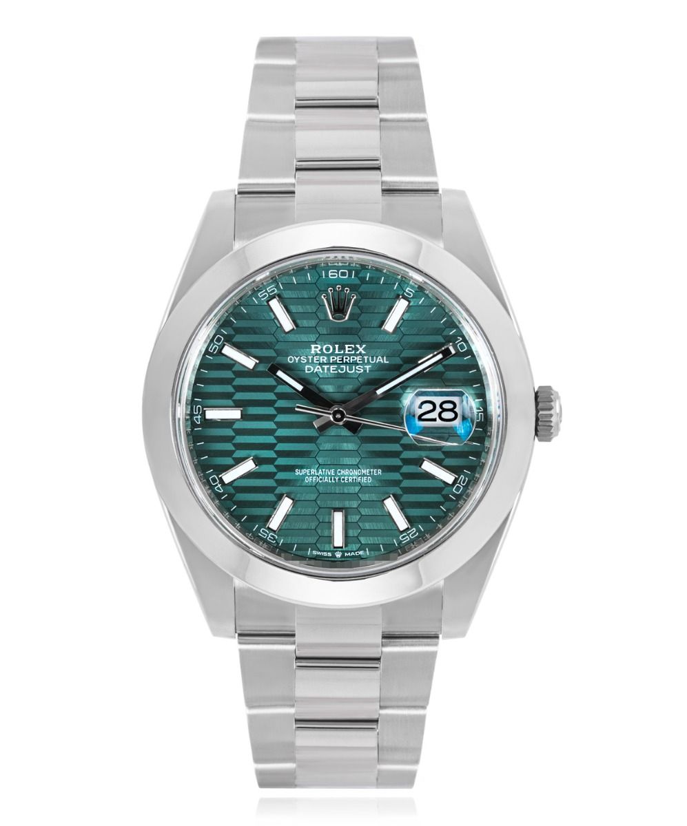 This Rolex Datejust 41 126300 has a mint green fluted motif dial and a bracelet strap. This Rolex has undergone a thorough inspection of water resistance, accuracy, functionality and condition to determine the level of reconditioning required to meet our strict standards. It has also been referenced against technical documents and manufacturer records where available to ensure authenticity and a clean history. Our watches have a 24-month warranty for your peace of mind, in conjunction with any remaining manufacturer’s warranty from new or from service. To maintain the manufacturer’s warranty on this watch, it has not been polished in our service centre.