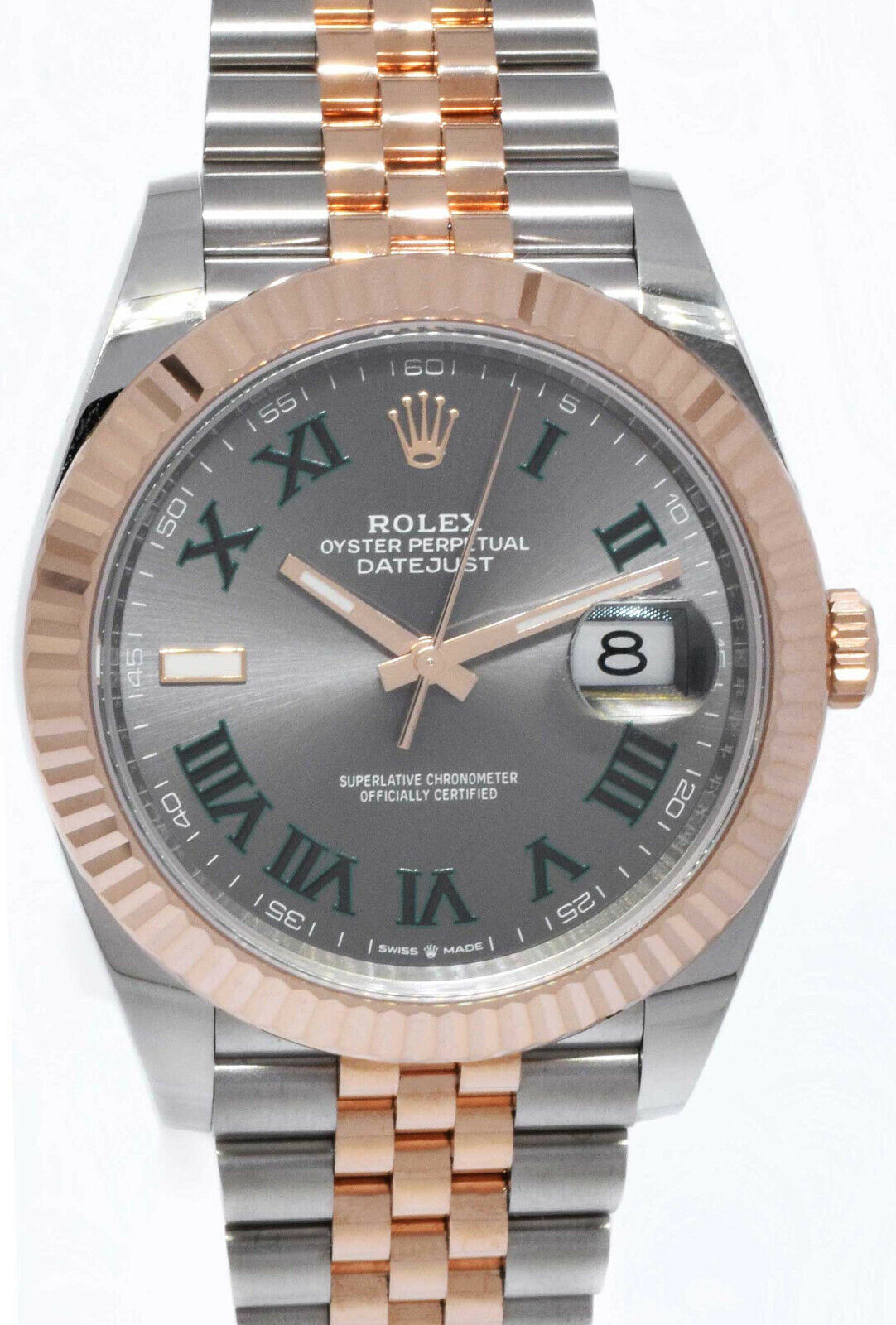 This Rolex Datejust 41 126331 has a slate roman numeral dial and a bracelet strap. This Rolex has undergone a thorough inspection of water resistance, accuracy, functionality and condition to determine the level of reconditioning required to meet our strict standards. It has also been referenced against technical documents and manufacturer records where available to ensure authenticity and a clean history. Our watches have a 24-month warranty for your peace of mind, in conjunction with any remaining manufacturer’s warranty from new or from service. To maintain the manufacturer’s warranty on this watch, it has not been polished in our service centre.