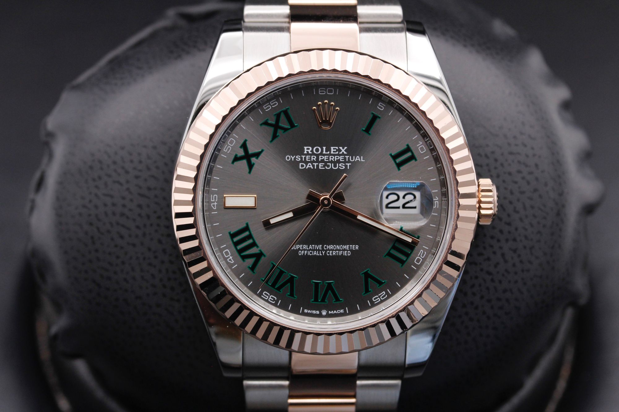 This Rolex Datejust 41 126331 has a slate roman numeral dial and a bracelet strap. This Rolex has undergone a thorough inspection of water resistance, accuracy, functionality and condition to determine the level of reconditioning required to meet our strict standards. It has also been referenced against technical documents and manufacturer records where available to ensure authenticity and a clean history. Our watches have a 24-month warranty for your peace of mind, in conjunction with any remaining manufacturer’s warranty from new or from service. To maintain the manufacturer’s warranty on this watch, it has not been polished in our service centre.