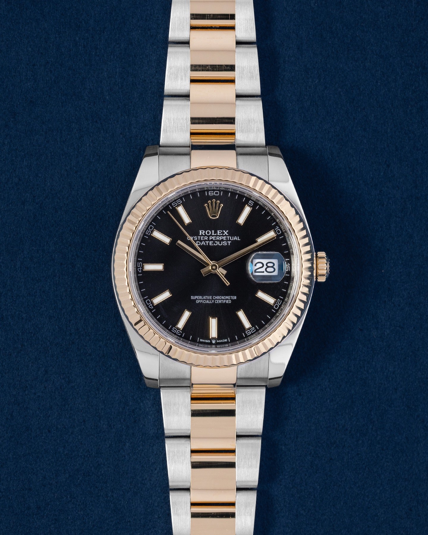 This Rolex Datejust 41 126333 has a black baton dial and a bracelet strap. This Rolex has undergone a thorough inspection of water resistance, accuracy, functionality and condition to determine the level of reconditioning required to meet our strict standards. It has also been referenced against technical documents and manufacturer records where available to ensure authenticity and a clean history. All our watches have a 24-month warranty for your peace of mind. One of our skilled polishing technicians has removed marks on the case and bracelet of this watch, brought about by daily wear and tear, which is why this watch does not come with the remaining manufacturer’s warranty.
