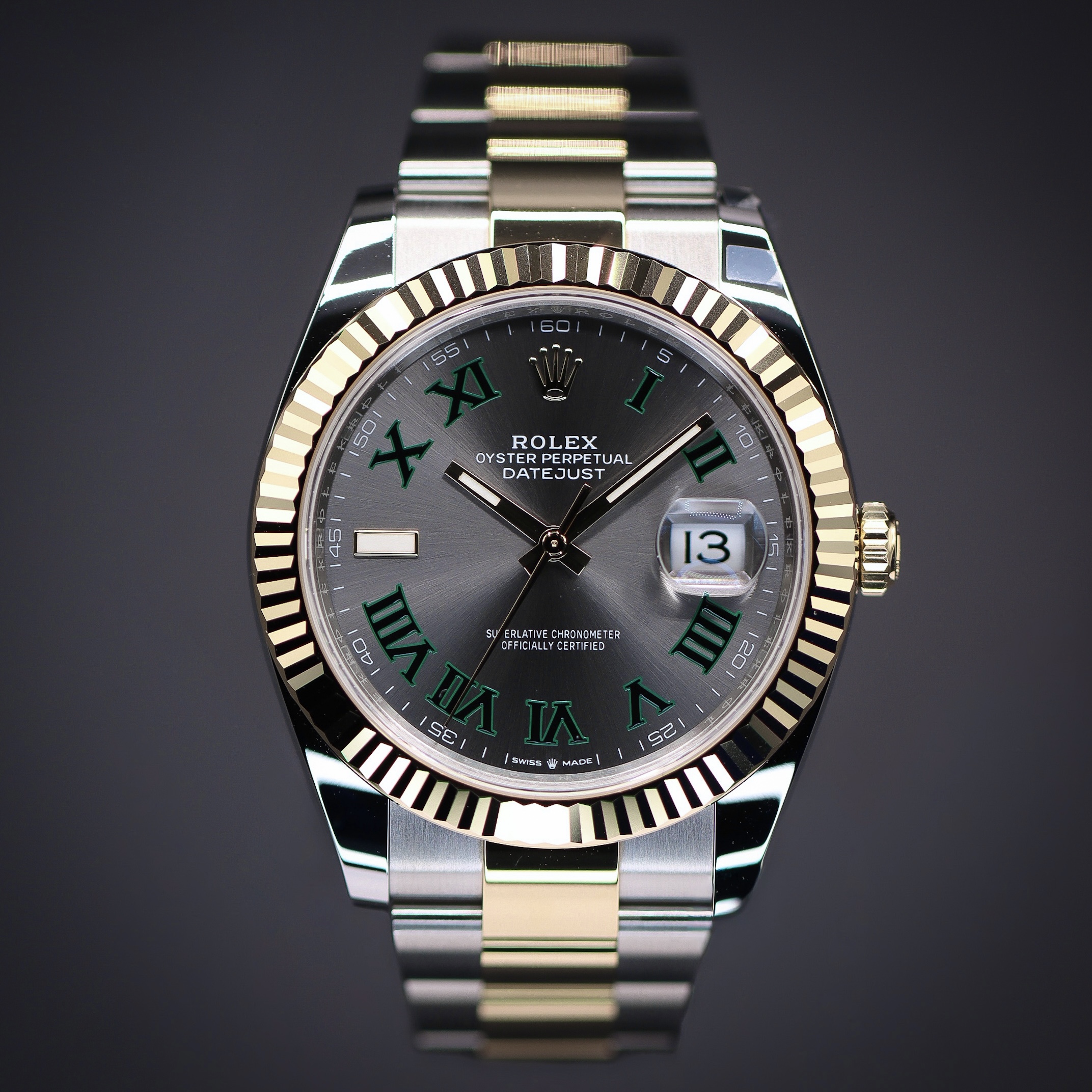 This Rolex Datejust 41 126333 has a slate roman numeral dial and a bracelet strap. This Rolex has undergone a thorough inspection of water resistance, accuracy, functionality and condition to determine the level of reconditioning required to meet our strict standards. It has also been referenced against technical documents and manufacturer records where available to ensure authenticity and a clean history. Our watches have a 24-month warranty for your peace of mind, in conjunction with any remaining manufacturer’s warranty from new or from service. To maintain the manufacturer’s warranty on this watch, it has not been polished in our service centre.