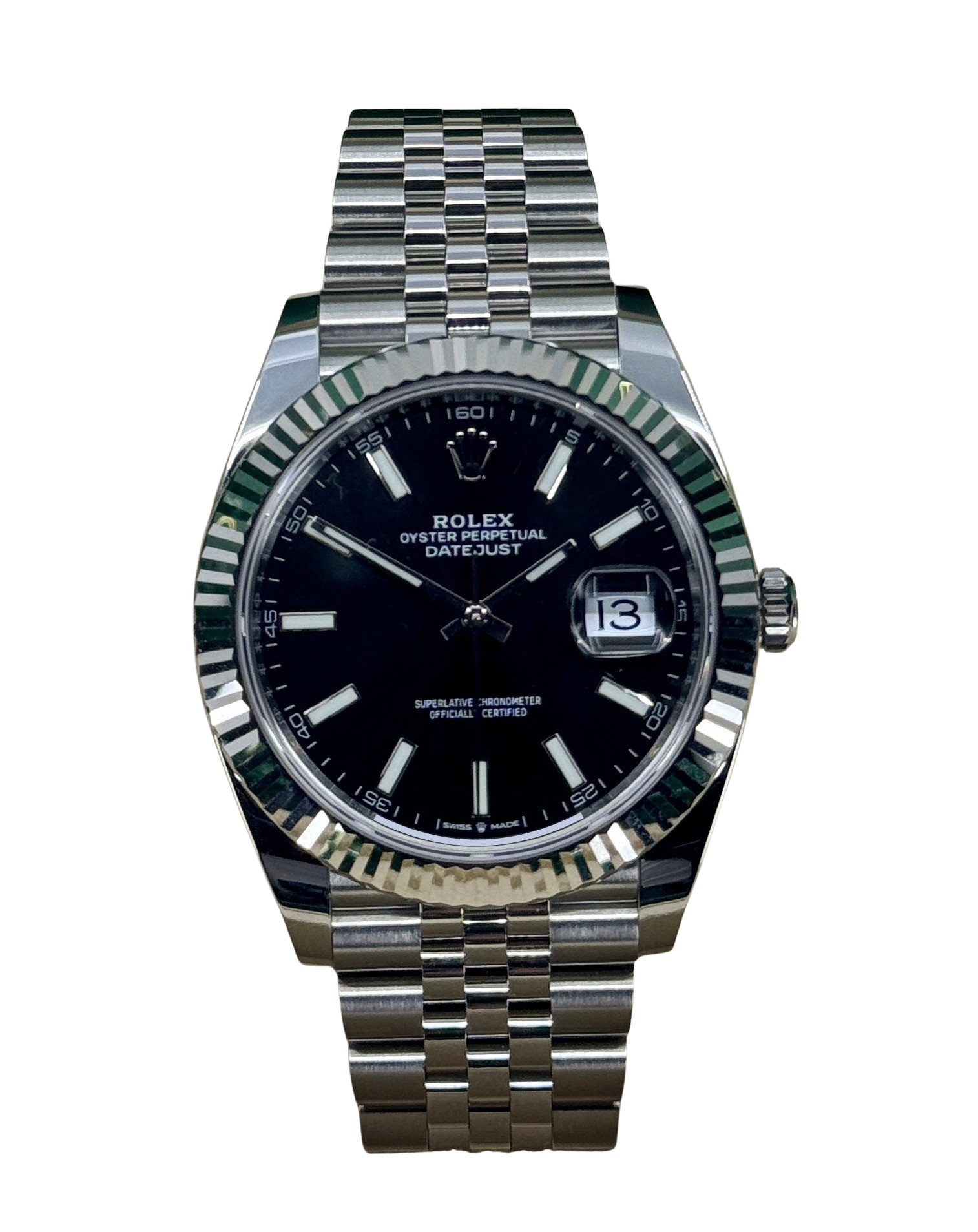 This Rolex Datejust 41 126334 has a black baton dial and a bracelet strap. This Rolex has undergone a thorough inspection of water resistance, accuracy, functionality and condition to determine the level of reconditioning required to meet our strict standards. It has also been referenced against technical documents and manufacturer records where available to ensure authenticity and a clean history. Our watches have a 24-month warranty for your peace of mind, in conjunction with any remaining manufacturer’s warranty from new or from service. To maintain the manufacturer’s warranty on this watch, it has not been polished in our service centre.