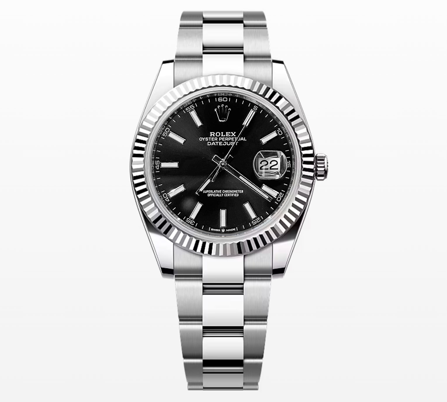 This Rolex Datejust 41 126334 has a black baton dial and a bracelet strap. This Rolex has undergone a thorough inspection of water resistance, accuracy, functionality and condition to determine the level of reconditioning required to meet our strict standards. It has also been referenced against technical documents and manufacturer records where available to ensure authenticity and a clean history. Our watches have a 24-month warranty for your peace of mind, in conjunction with any remaining manufacturer’s warranty from new or from service. To maintain the manufacturer’s warranty on this watch, it has not been polished in our service centre.