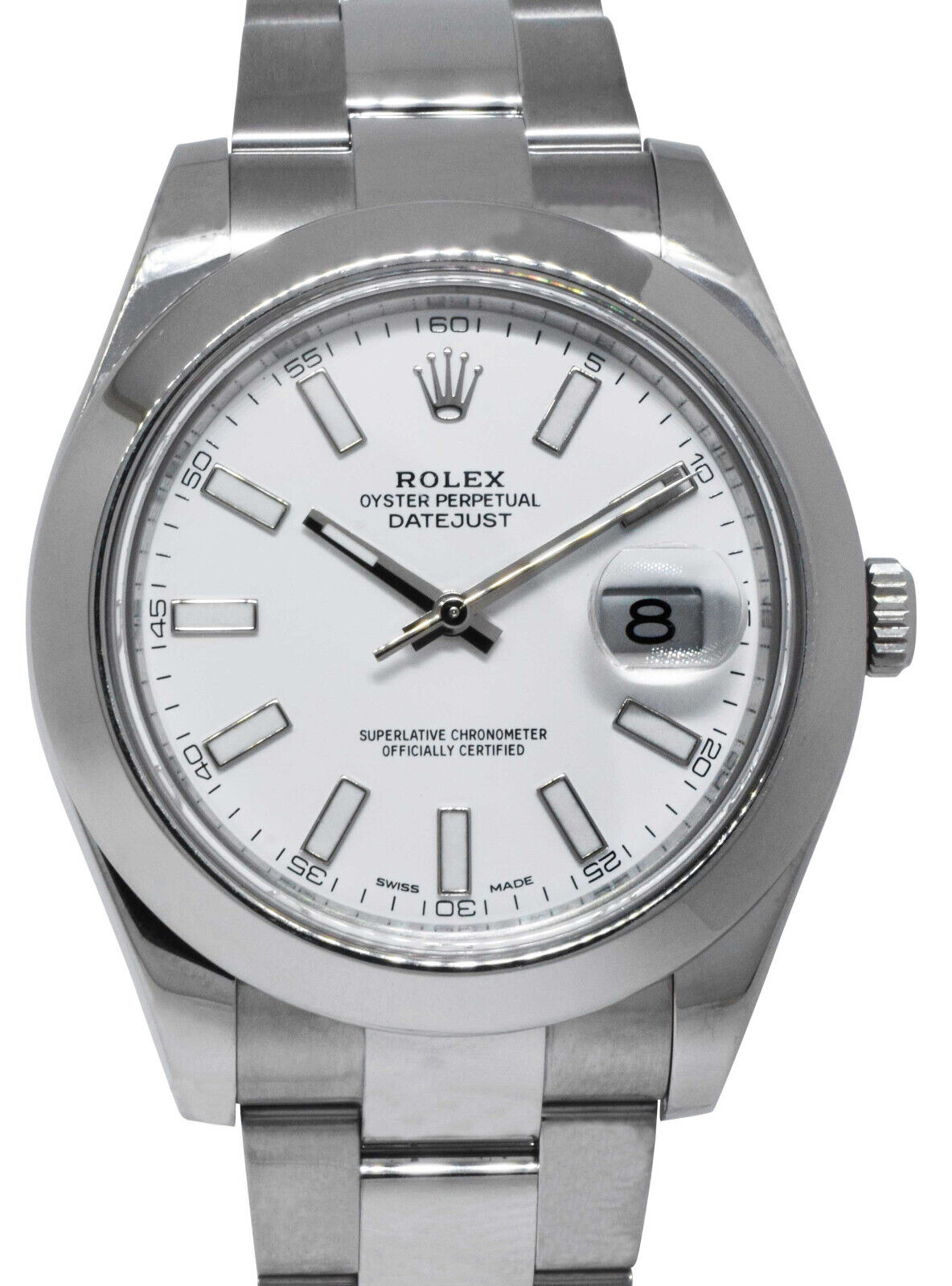 This Rolex Datejust II 116300 has a white baton dial and a bracelet strap. This Rolex has undergone a thorough inspection of water resistance, accuracy, functionality and condition to determine the level of reconditioning required to meet our strict standards. It has also been referenced against technical documents and manufacturer records where available to ensure authenticity and a clean history. All our watches have a 24-month warranty for your peace of mind. One of our skilled polishing technicians has removed marks on the case and bracelet of this watch, brought about by daily wear and tear, which is why this watch does not come with the remaining manufacturer’s warranty.