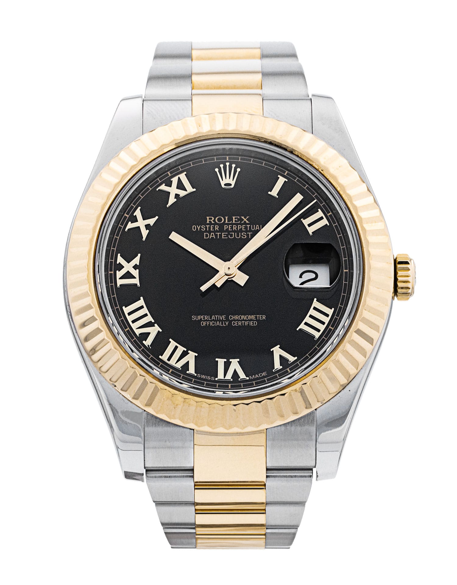 This Rolex Datejust II 116333 has a black roman numeral dial and a bracelet strap. This Rolex has undergone a thorough inspection of water resistance, accuracy, functionality and condition to determine the level of reconditioning required to meet our strict standards. It has also been referenced against technical documents and manufacturer records where available to ensure authenticity and a clean history. All our watches have a 24-month warranty for your peace of mind. One of our skilled polishing technicians has removed marks on the case and bracelet of this watch, brought about by daily wear and tear, which is why this watch does not come with the remaining manufacturer’s warranty.