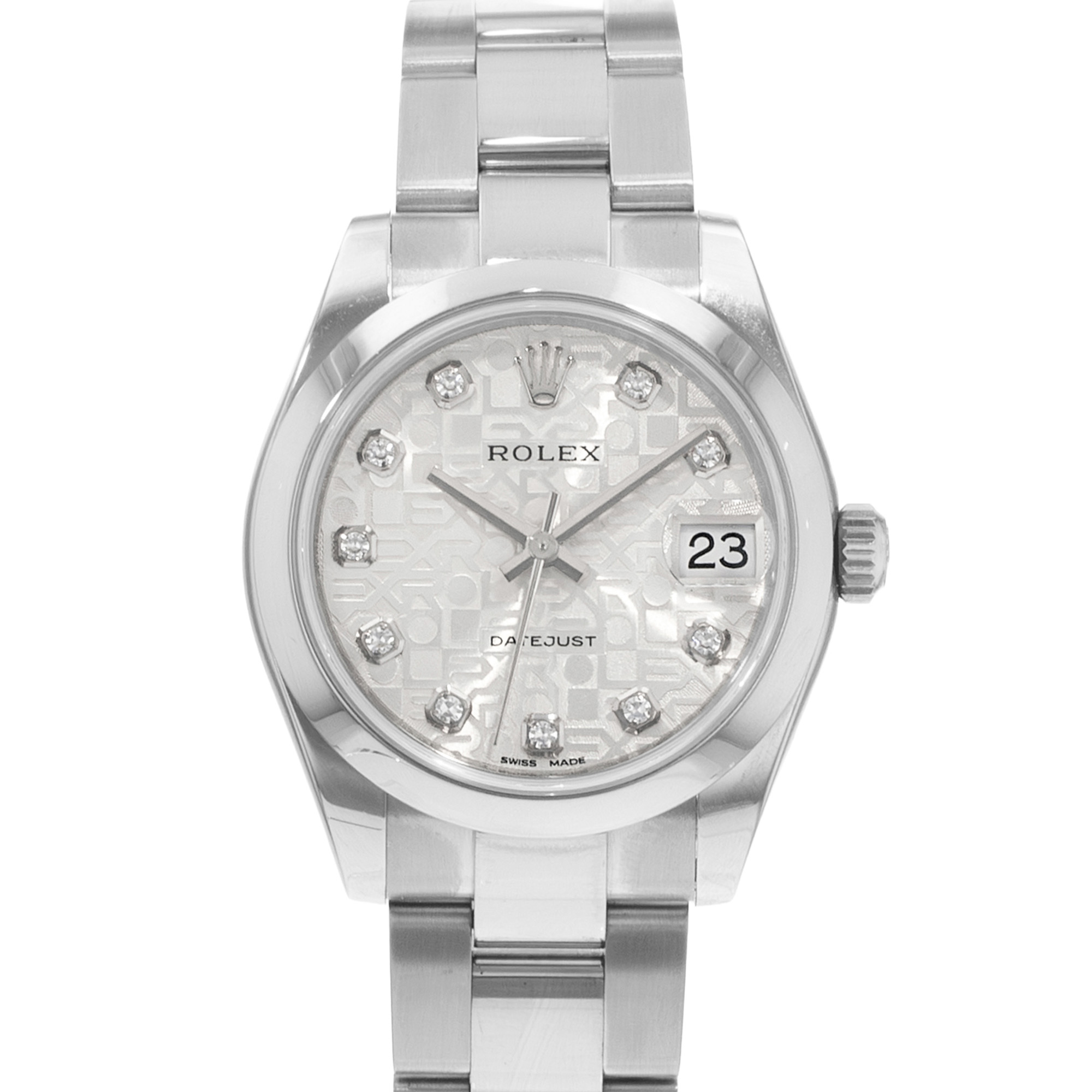 This Rolex Datejust Lady 31 178240 has a silver roman numeral dial and a bracelet strap. This Rolex has undergone a thorough inspection of water resistance, accuracy, functionality and condition to determine the level of reconditioning required to meet our strict standards. It has also been referenced against technical documents and manufacturer records where available to ensure authenticity and a clean history. All our watches have a 24-month warranty for your peace of mind. One of our skilled polishing technicians has removed marks on the case and bracelet of this watch, brought about by daily wear and tear, which is why this watch does not come with the remaining manufacturer’s warranty.