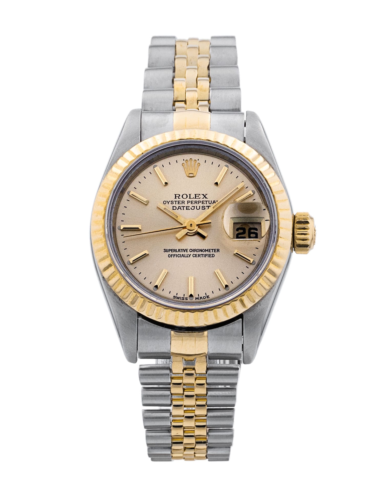 This Rolex Datejust Lady 69173 has a champagne linen dial and a bracelet strap. This Rolex has undergone a thorough inspection of water resistance, accuracy, functionality and condition to determine the level of reconditioning required to meet our strict standards. It has also been referenced against technical documents and manufacturer records where available to ensure authenticity and a clean history. All our watches have a 24-month warranty for your peace of mind. One of our skilled polishing technicians has removed marks on the case and bracelet of this watch, brought about by daily wear and tear, which is why this watch does not come with the remaining manufacturer’s warranty.