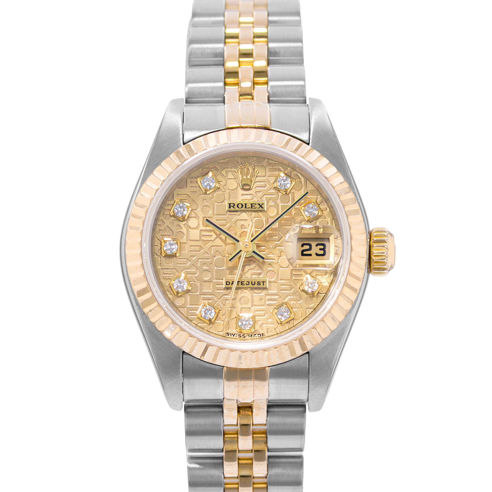This Rolex Datejust Lady 79173 has a champagne jubilee diamond dial and a bracelet strap. This Rolex has undergone a thorough inspection of water resistance, accuracy, functionality and condition to determine the level of reconditioning required to meet our strict standards. It has also been referenced against technical documents and manufacturer records where available to ensure authenticity and a clean history. All our watches have a 24-month warranty for your peace of mind. One of our skilled polishing technicians has removed marks on the case and bracelet of this watch, brought about by daily wear and tear, which is why this watch does not come with the remaining manufacturer’s warranty.