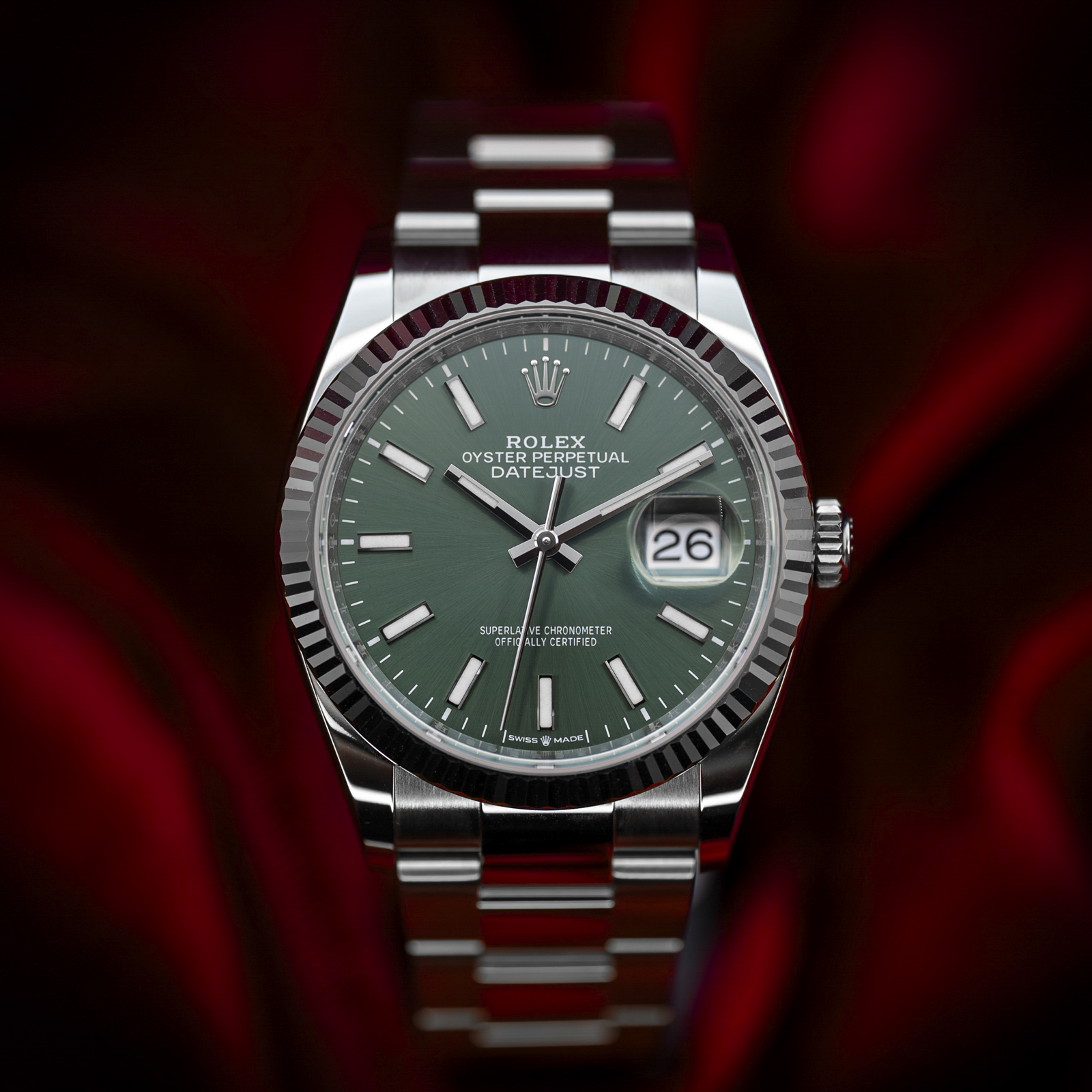 This Rolex Datejust 126234 has a mint green baton dial and a bracelet strap. This Rolex has undergone a thorough inspection of water resistance, accuracy, functionality and condition to determine the level of reconditioning required to meet our strict standards. It has also been referenced against technical documents and manufacturer records where available to ensure authenticity and a clean history. Our watches have a 24-month warranty for your peace of mind, in conjunction with any remaining manufacturer’s warranty from new or from service. To maintain the manufacturer’s warranty on this watch, it has not been polished in our service centre.