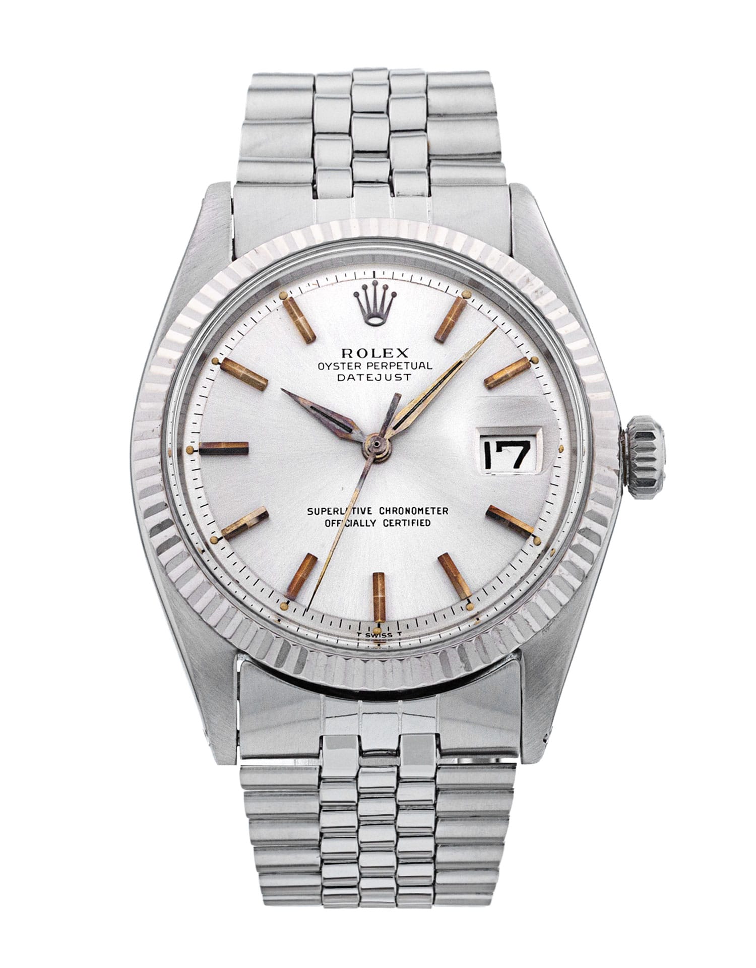 This Rolex Datejust 1601 has a silver baton dial and a bracelet strap. This Rolex has undergone a thorough inspection of accuracy, functionality and condition to determine the level of reconditioning required to meet our strict standards. It has also been referenced against technical documents and manufacturer records where available to ensure authenticity and a clean history. All our watches have a 24-month warranty for your peace of mind. One of our skilled polishing technicians has removed marks on the case and bracelet of this watch, brought about by daily wear and tear, which is why this watch does not come with the remaining manufacturer’s warranty.