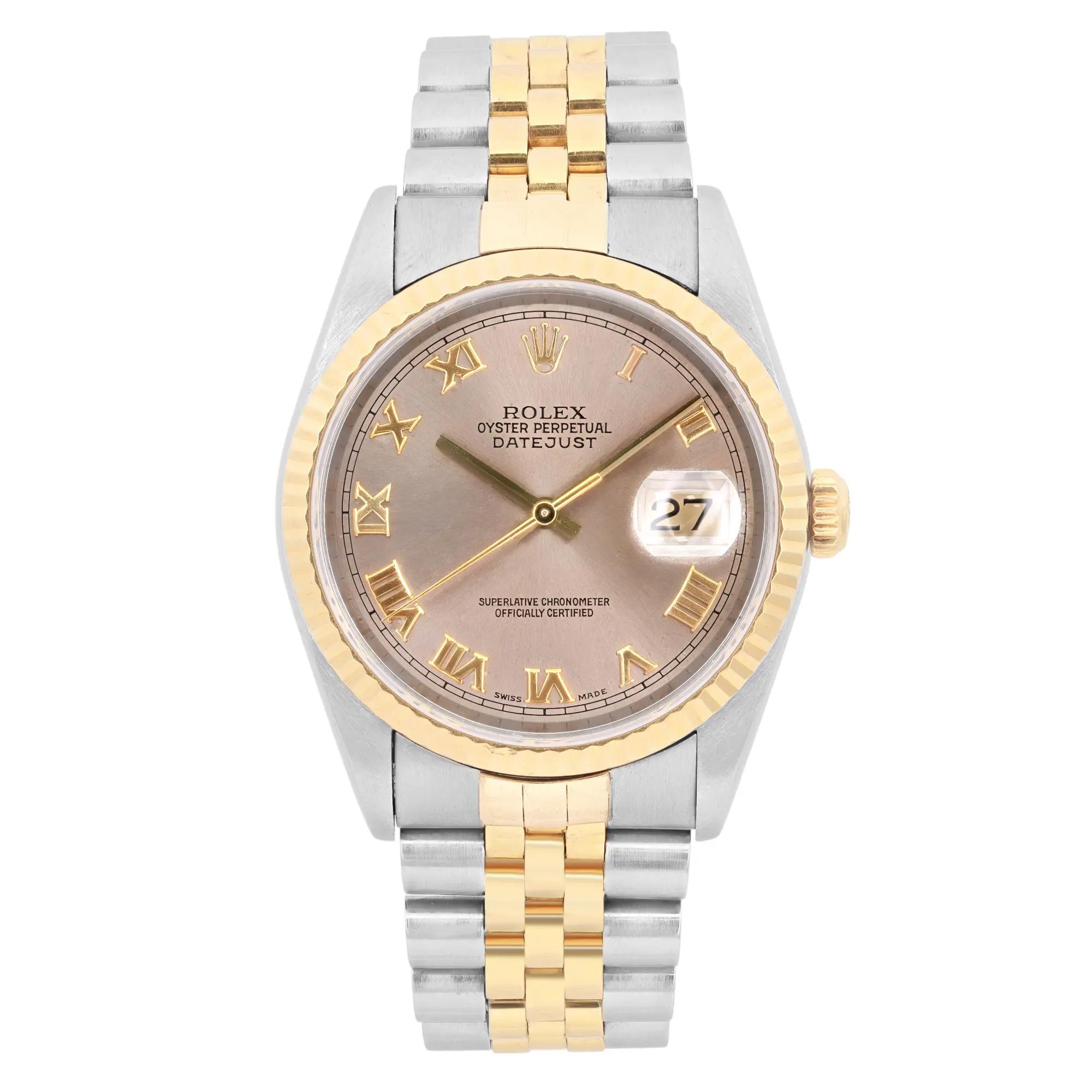 This Rolex Datejust 16233 has a steel grey roman numeral dial and a bracelet strap. This Rolex has undergone a thorough inspection of water resistance, accuracy, functionality and condition to determine the level of reconditioning required to meet our strict standards. It has also been referenced against technical documents and manufacturer records where available to ensure authenticity and a clean history. All our watches have a 24-month warranty for your peace of mind. One of our skilled polishing technicians has removed marks on the case and bracelet of this watch, brought about by daily wear and tear, which is why this watch does not come with the remaining manufacturer’s warranty.