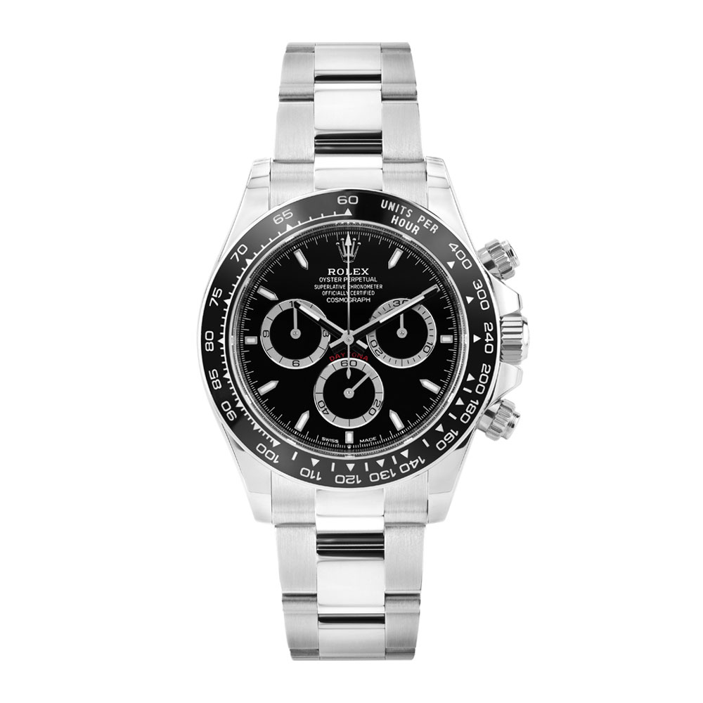 This Rolex Daytona 126500 LN has a black dial and a bracelet strap. This Rolex has undergone a thorough inspection of water resistance, accuracy, functionality and condition to determine the level of reconditioning required to meet our strict standards. It has also been referenced against technical documents and manufacturer records where available to ensure authenticity and a clean history. Our watches have a 24-month warranty for your peace of mind, in conjunction with any remaining manufacturer’s warranty from new or from service. To maintain the manufacturer’s warranty on this watch, it has not been polished in our service centre.