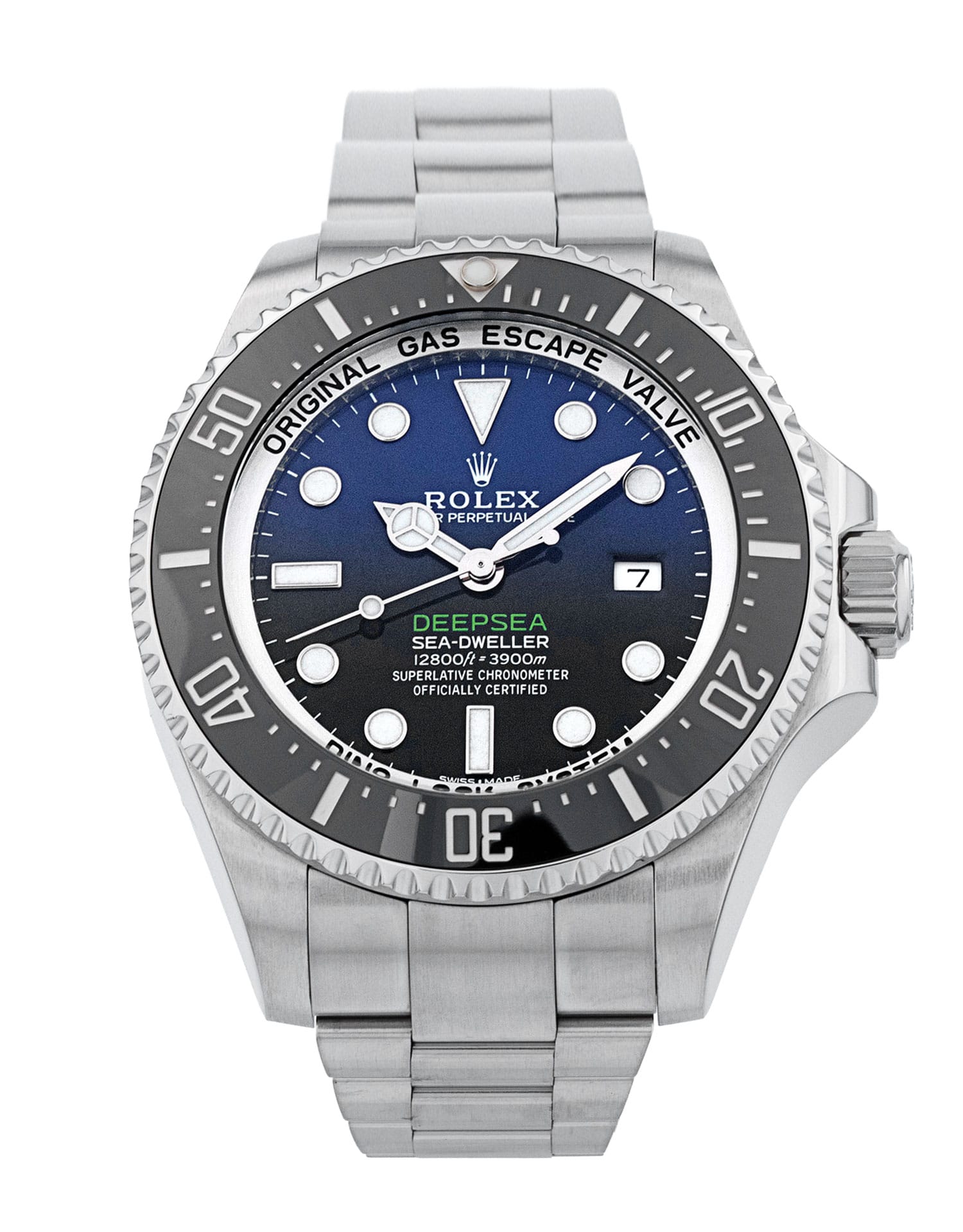 This Rolex Deepsea 116660 - D-Blue has a black & blue dial and a bracelet strap. This Rolex has undergone a thorough inspection of water resistance, accuracy, functionality and condition to determine the level of reconditioning required to meet our strict standards. It has also been referenced against technical documents and manufacturer records where available to ensure authenticity and a clean history. All our watches have a 24-month warranty for your peace of mind. One of our skilled polishing technicians has removed marks on the case and bracelet of this watch, brought about by daily wear and tear, which is why this watch does not come with the remaining manufacturer’s warranty.