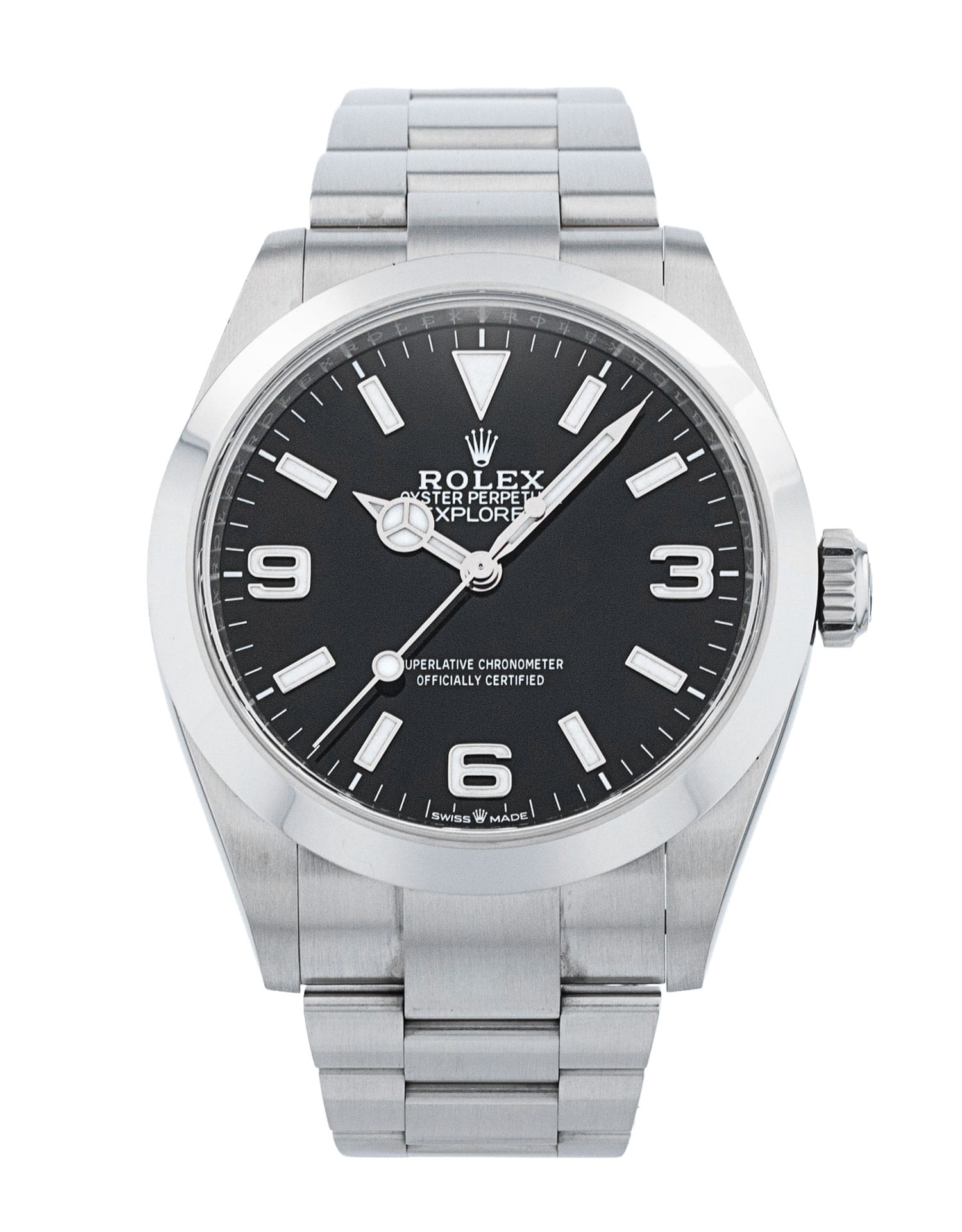 This Rolex Explorer 40 224270 has a black quarter arabic dial and a bracelet strap. This Rolex has undergone a thorough inspection of water resistance, accuracy, functionality and condition to determine the level of reconditioning required to meet our strict standards. It has also been referenced against technical documents and manufacturer records where available to ensure authenticity and a clean history. Our watches have a 24-month warranty for your peace of mind, in conjunction with any remaining manufacturer’s warranty from new or from service. To maintain the manufacturer’s warranty on this watch, it has not been polished in our service centre.