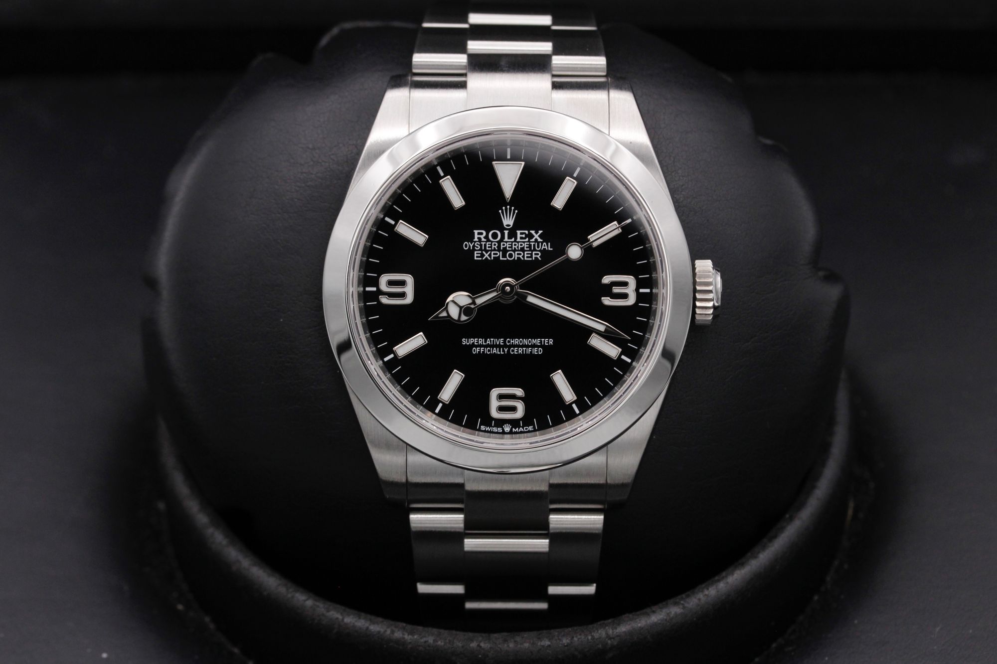 This Rolex Explorer 40 224270 has a black quarter arabic dial and a bracelet strap. This Rolex has undergone a thorough inspection of water resistance, accuracy, functionality and condition to determine the level of reconditioning required to meet our strict standards. It has also been referenced against technical documents and manufacturer records where available to ensure authenticity and a clean history. Our watches have a 24-month warranty for your peace of mind, in conjunction with any remaining manufacturer’s warranty from new or from service. To maintain the manufacturer’s warranty on this watch, it has not been polished in our service centre.