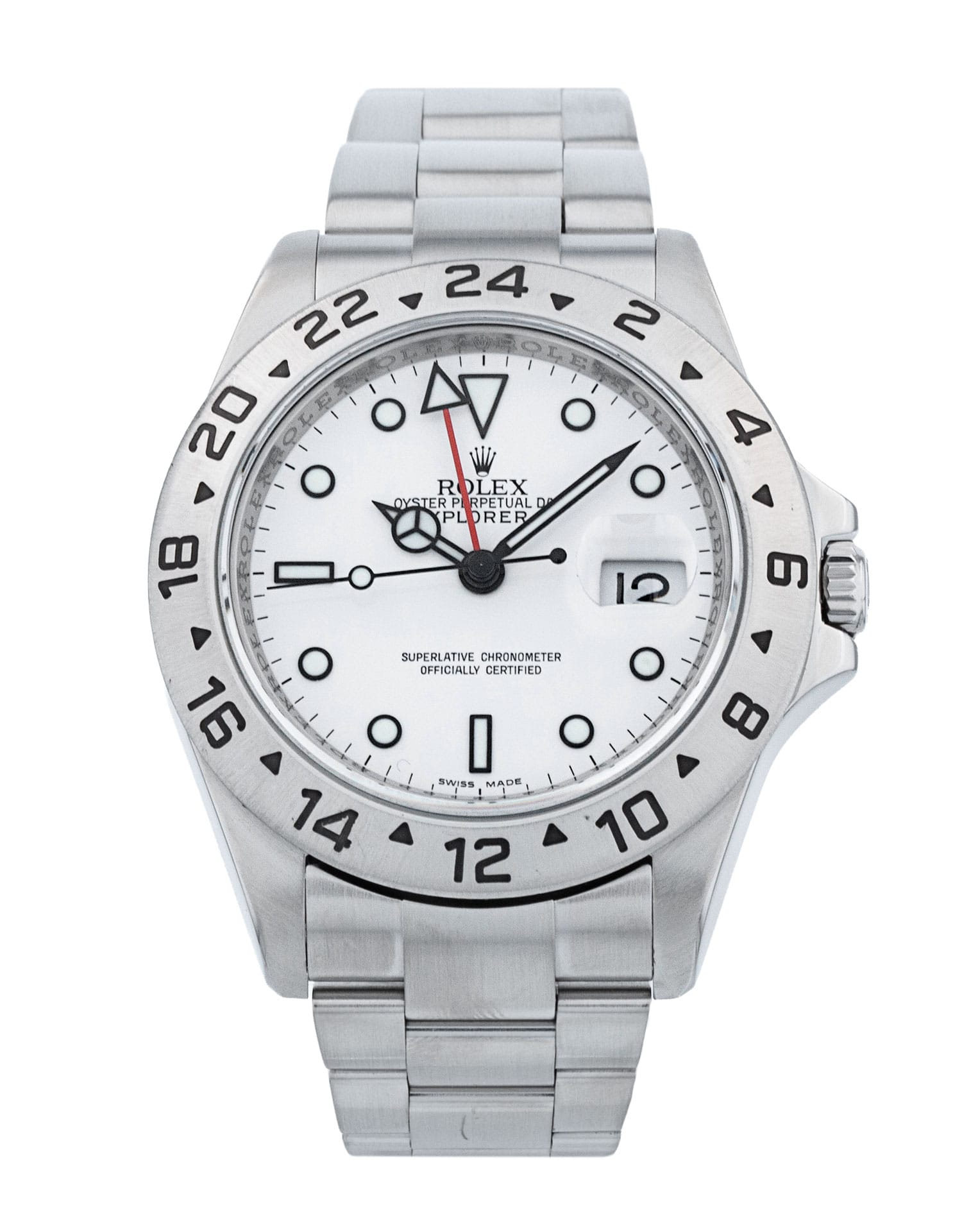 This Rolex Explorer II 16570 has a white dial and a bracelet strap. This Rolex has undergone a thorough inspection of water resistance, accuracy, functionality and condition to determine the level of reconditioning required to meet our strict standards. It has also been referenced against technical documents and manufacturer records where available to ensure authenticity and a clean history. All our watches have a 24-month warranty for your peace of mind. One of our skilled polishing technicians has removed marks on the case and bracelet of this watch, brought about by daily wear and tear, which is why this watch does not come with the remaining manufacturer’s warranty.